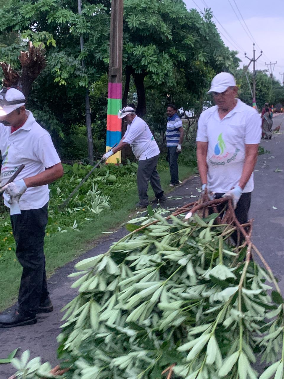 రెండో రకం పని 3 గ్గురిది - బాట పడమటి మార్జిన్ గడ్డినీ, పిచ్చికంపల్నీ తొలగించుకొంటూ, ప్లాస్టిక్ తుక్కుల్ని విడగొట్టి ప్రోగులు పెడుతూ, కత్తీ – గొర్రులకు పని చెపుతూ ఇద్దరు విశ్రాంత ఉద్యోగులు!