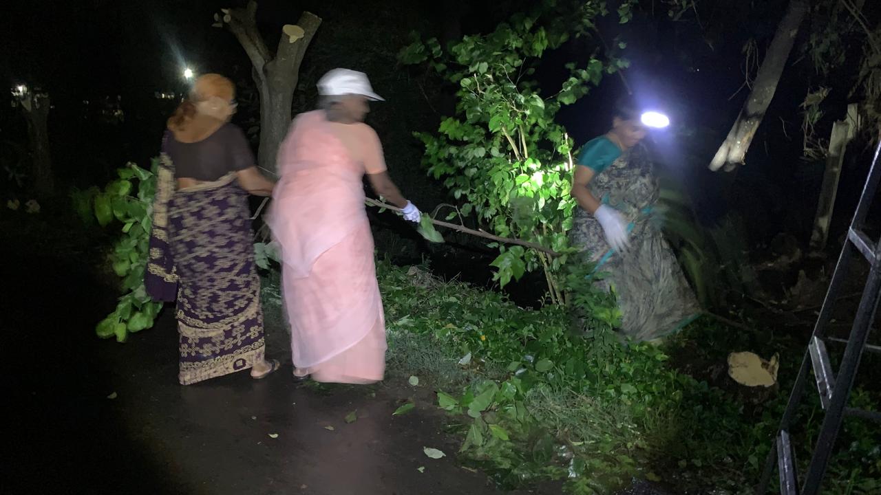 - తాత్కాలిక చెడువాసనగా, ఆరోగ్య భంగకరంగా భ్రమపడుతున్న ఏడాకుల చెట్లను 7-8 మంది రంపంతోనూ, కత్తుల్తోనూ ట్రిమ్ చేసే పనిలోనూ