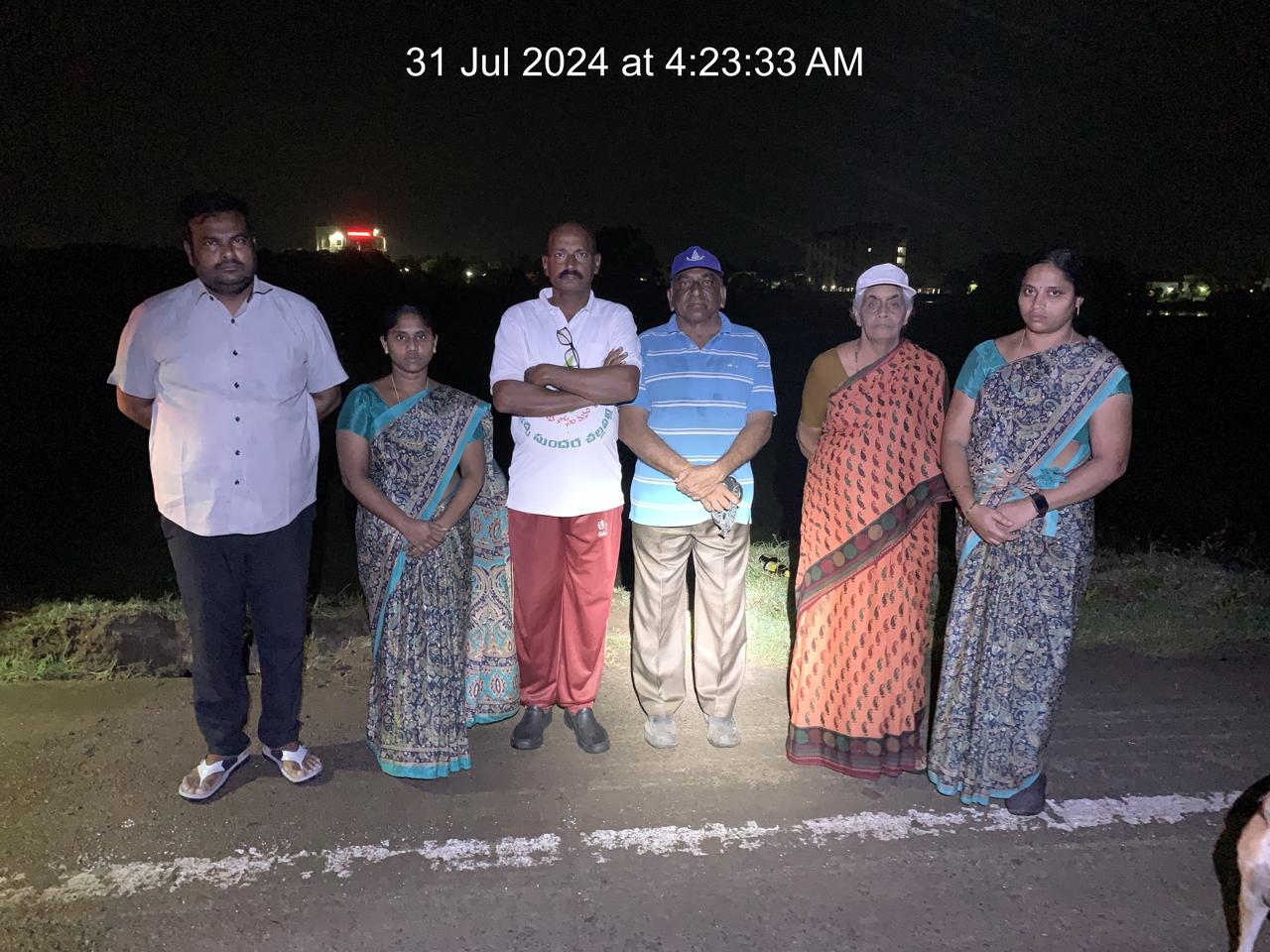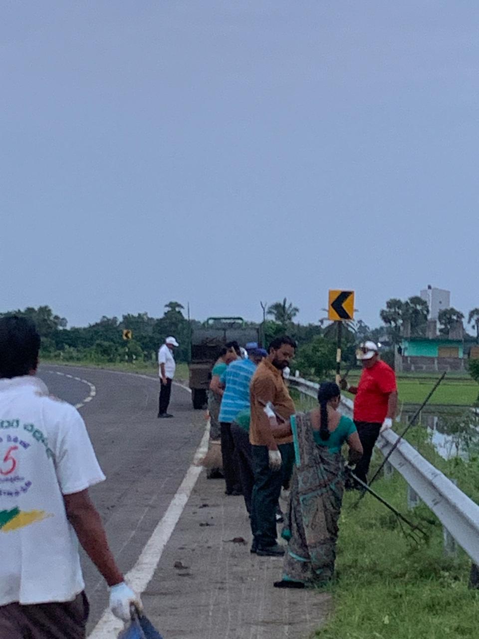 జులై మాసాంతపు వేకువన స్వచ్చ కార్యకర్తల పని స్థలం గురిచిన ఆరేడు నిముషాల సందిగ్ధం! ‘వర్షమేమైనా చిలిపి చేష్టలు చేస్తుందా – 2 గంటల పాటు స్థిమితంగా పని చేసుకోనిస్తుందా’ అని! ఆ మీమాంసకు తెరదించుతూ మాలెంపాటి అంజయ్య గారి సముచిత సలహాతో అక్కడికి కిలోమీటరు దూరంలోని NH 216 – వంతెన వద్దకు చేరడమూ, పనిలో దిగడమూ!