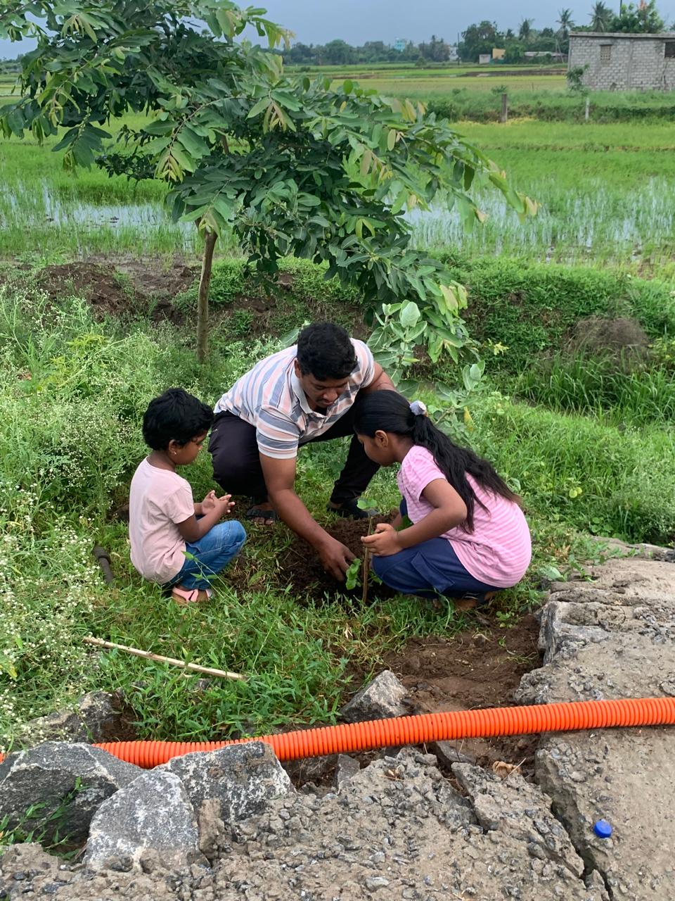 ఈ 3-4 నాళ్ళ కష్టంతో వీళ్ళ హరిత సుందరీకరణ 1 కిలోమీటరు దూరాన గల NH 216 – పెదకళ్ళేపల్లి జంక్షను దాటింది. ఆ ప్రాంతంలో నిరుడు నాటిన పారిజాతాల్లోని నష్ట జాతకాలని ఇప్పుడు సరిజేస్తున్నారన్న మాట! ఇప్పుడైనా మేకల – గేదెల వారు కాస్త జాగ్రత్త పడాలి మరి!