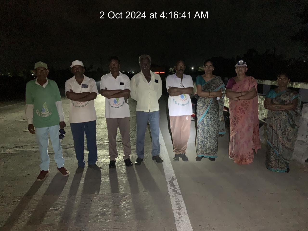 ఇది గాంధీ జయంతి – బుధవారం – వేకువ 4.17 కే శ్రమదాతలు పని చోటుకు చేరుకొన్నారు. ఈ పూట పని స్థలాలు కూడ గంగులవారిపాలెం వీధికీ, 216 వ రహదారికీ చెందినవే. ఆదినారాయణ అనే గాంధేయవాది (మంగళాపురం) నేటి 24 మంది కార్యకర్తల్లో ఒకరు. జాతిపిత ఆశయమైన ‘స్వచ్చతా’ సాధన చల్లపల్లి వీధుల్లో కన్న మిన్నగ ఎక్కడ జరుగుతున్నది!