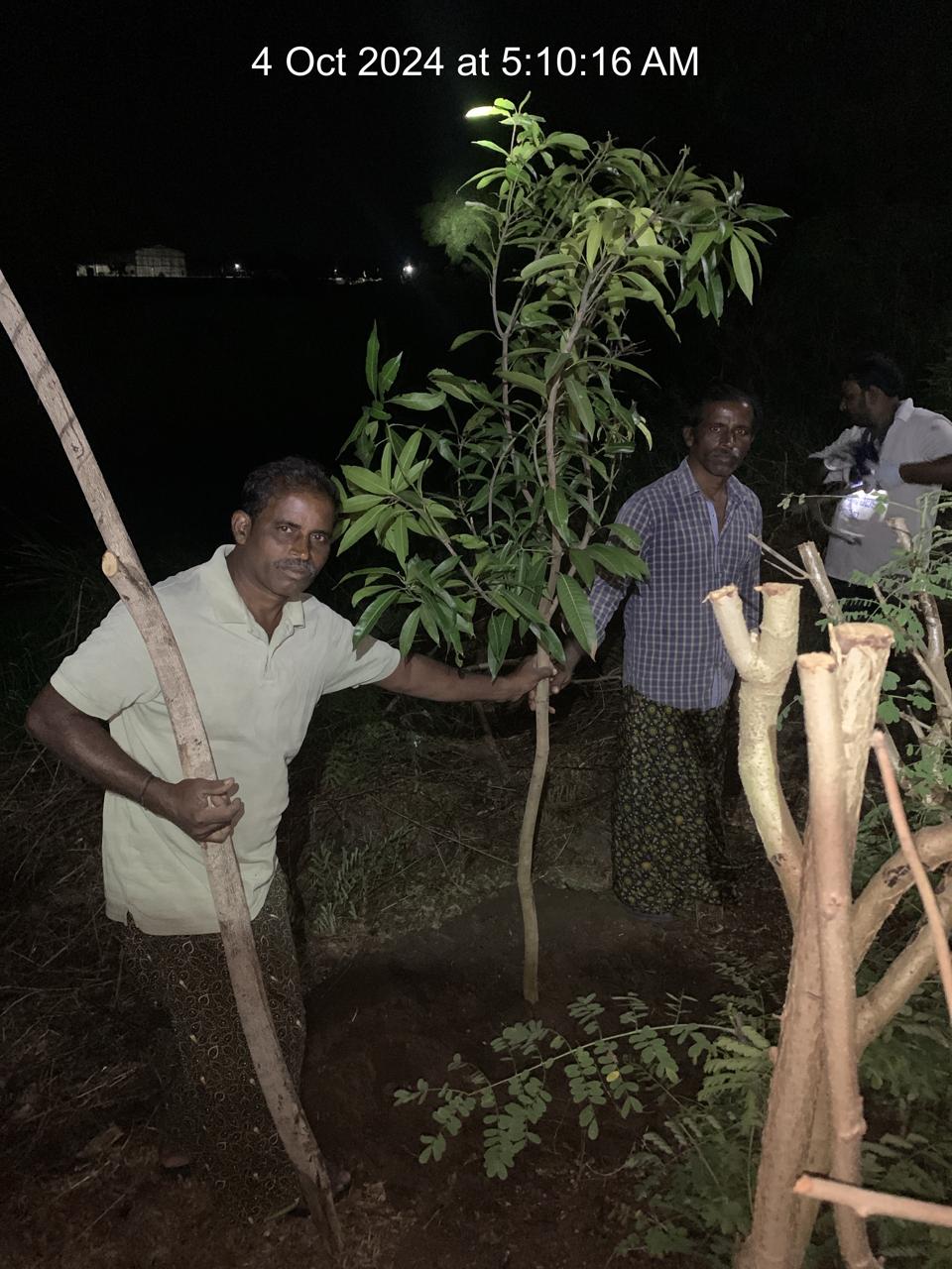 మరో ముగ్గురు చెట్ల పెంపకందారులు బండ్రేవుకోడు వంతెన కటూఇటూ ఎక్కడ కాస్త సందు దొరికితే అక్కడ బోగన్ విలియా నాటుతున్నారు. ఈ మామిడి చెట్లు ఇంకాస్త పెరిగి, మొండి ఏడాకుల చెట్ల మీదకు పూల తీగలు ప్రాకి పుష్పించి, గద్ద గోరు చెట్ల రంగుల పూలు గాలికి తలూపుతూ, నవ్వుతుంటే - బహుశా దీపావళి నాటికి చూడాలి - ఈ కిలోమీటరు బాట అందచందాలు!