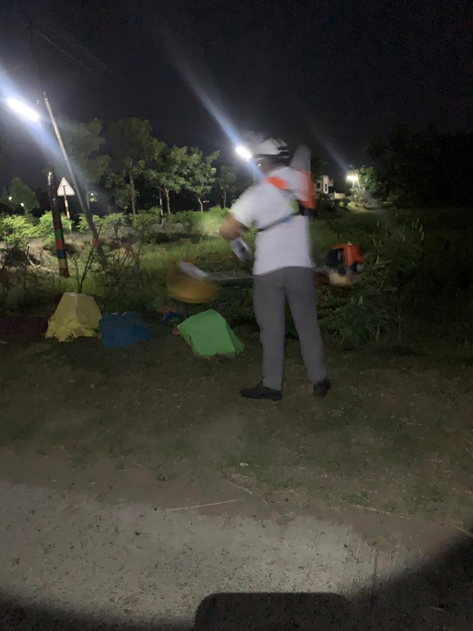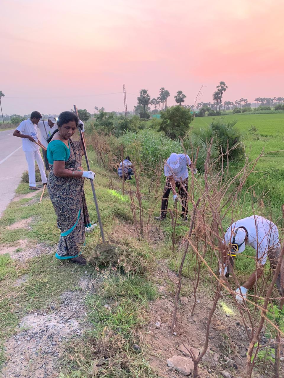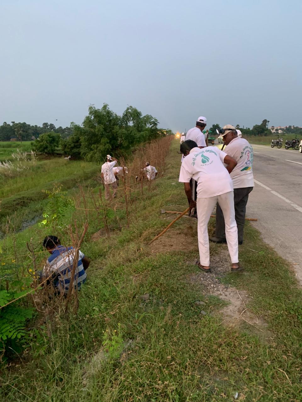 పని స్వభావం - రహదారి దక్షిణంగా 60-70 గజాల్లో పెరగబోతున్న పిచ్చిమొక్కల, పూల చెట్ల పాదుల గడ్డి పనిబట్టడమే! ముగ్గురు కార్యకర్తలు మాత్రం చల్లపల్లి - గంగులవారిపాలెపు, బందరు – అవనిగడ్డ క్రాస్ రోడ్డు వద్ద పనిలో కుదురుకొన్నారు.