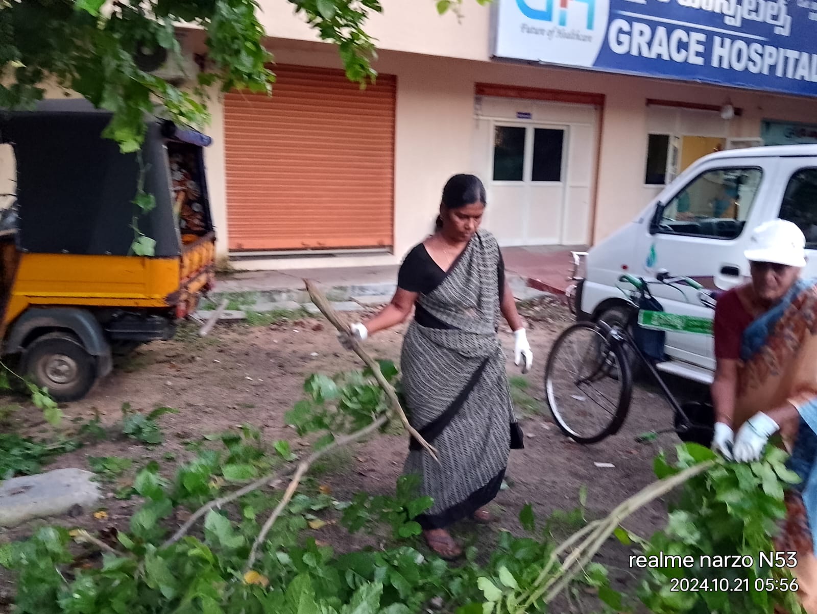 టీ కొట్టు ఎదుట ప్లాస్టిక్, పేపర్ కప్పుల సాంద్రత కొంత తగ్గింది. వంతెన దగ్గర 3 చోట్లా, గ్రేస్ ఆస్పత్రి ప్రాంగణంలోనూ పెరిగిన గడ్డిని చెక్కడానికే 15 మంది శ్రమించవలసొచ్చింది!