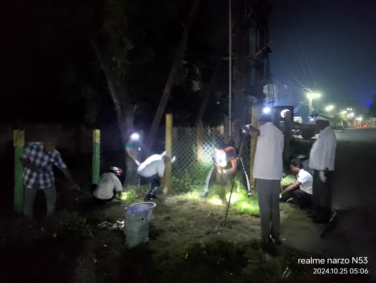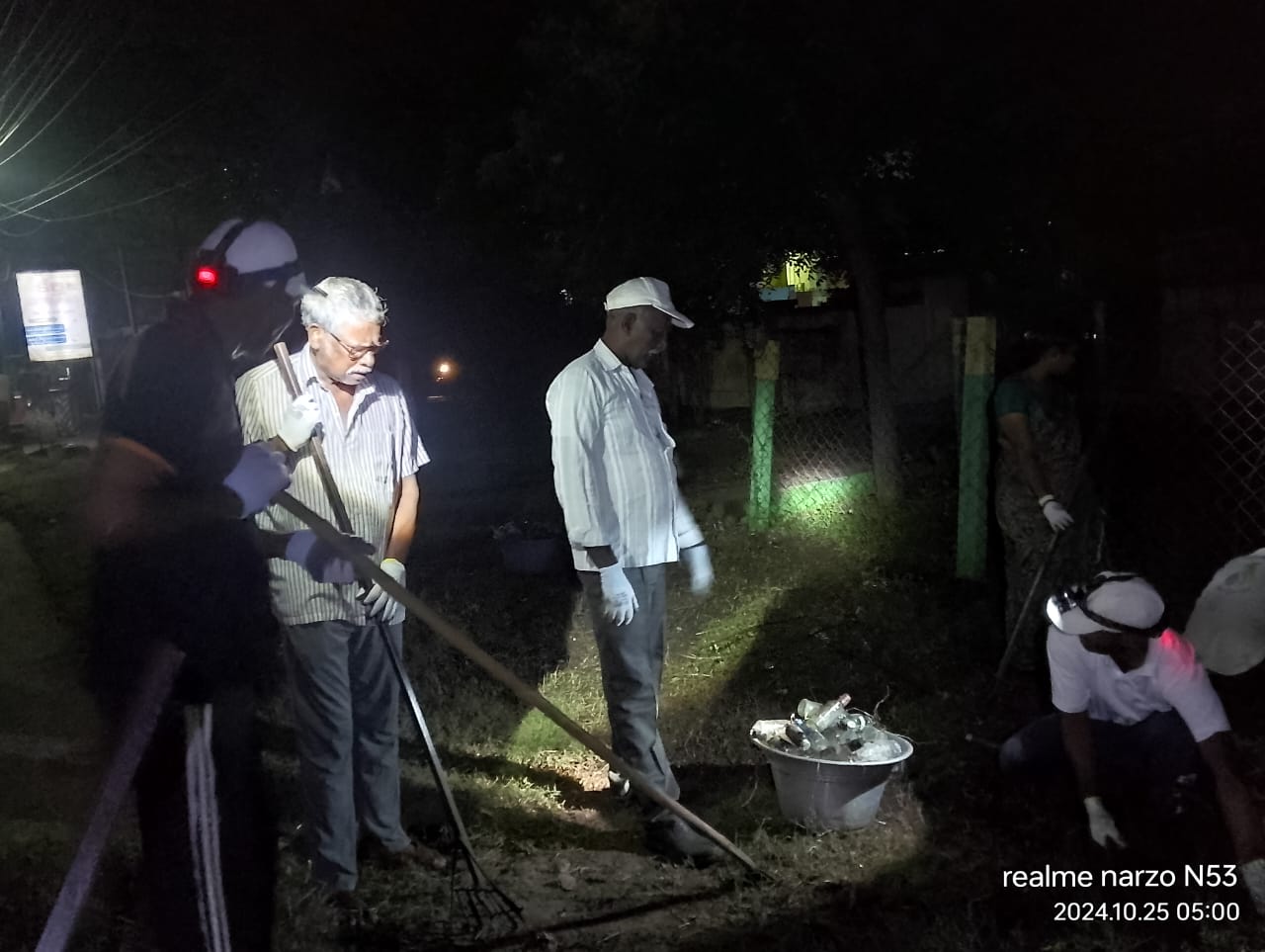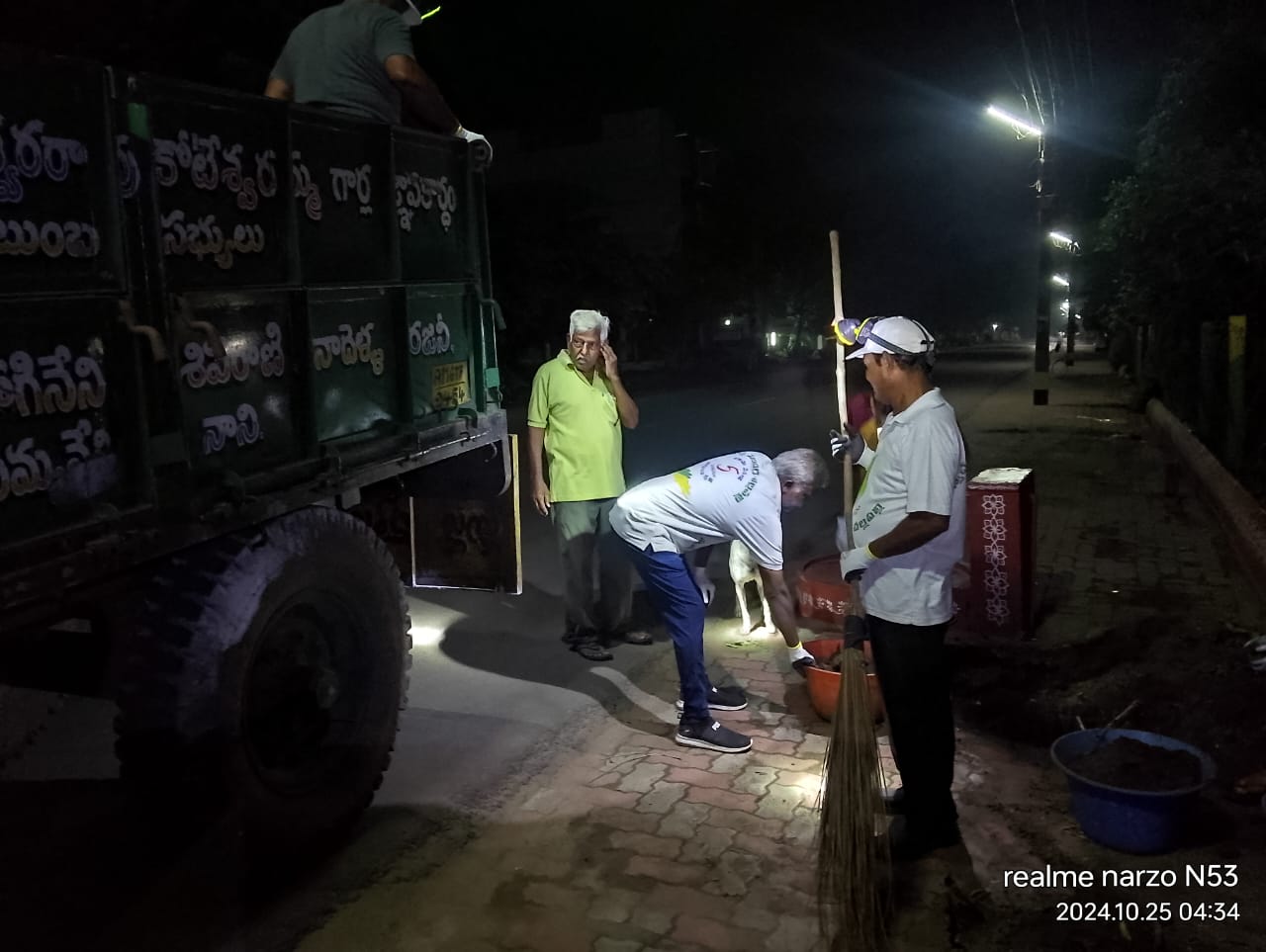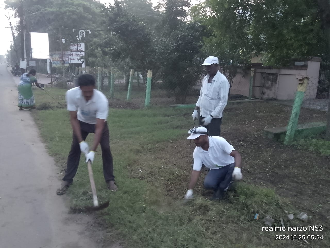 ట్రాన్స్ఫార్మరు ఫెన్సింగులో దూరిన ఒక రైతు ముఖ్యుడూ, మరొక రోటరీ ప్రముఖుడూ గడ్డి పరకల్నీ, కొబ్బరిబొండాల వ్యర్థాలనీ, ఖాళీ సారా / శీతల పానీయ సీసాల్నీ ఐదారు డిప్పలు బైటకు లాగారు! అక్కడికి తూర్పు – పడమర జాగాలను 15 మంది ఎంత శ్రమిస్తే ఇప్పుడింత చక్కగా కనిపిస్తున్నది?