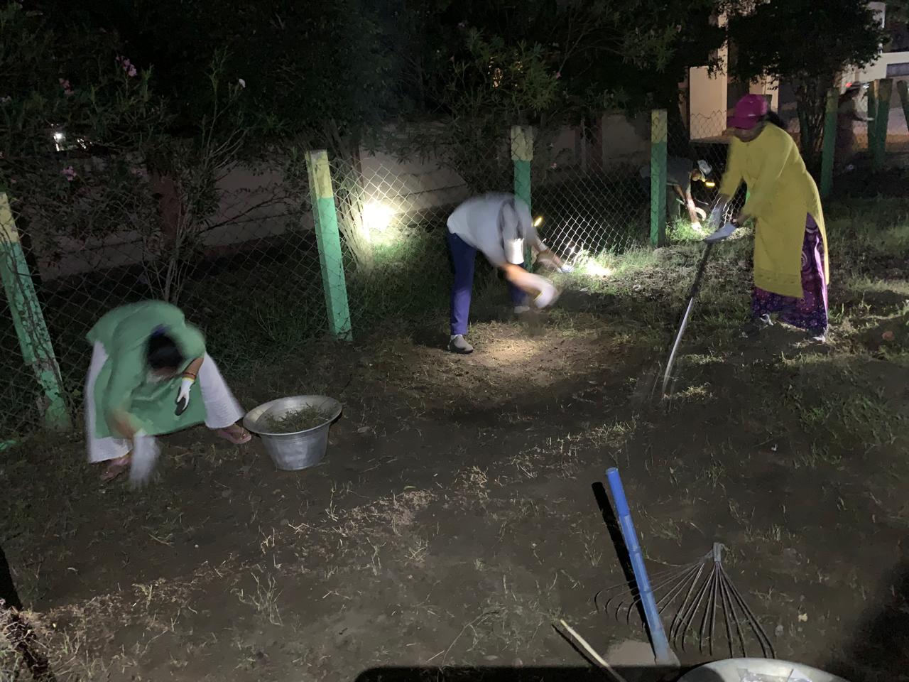 1) అమరావతి జమీందారుని ప్రాసాదము వెలుపలి ఉద్యానమునందలి ప్రతి పూల మొక్కకూ ప్రేమపూర్వకంగా కలుపు తొలగించుట-పాదులు సవరించుటలో 15 మందికి పైగా!
