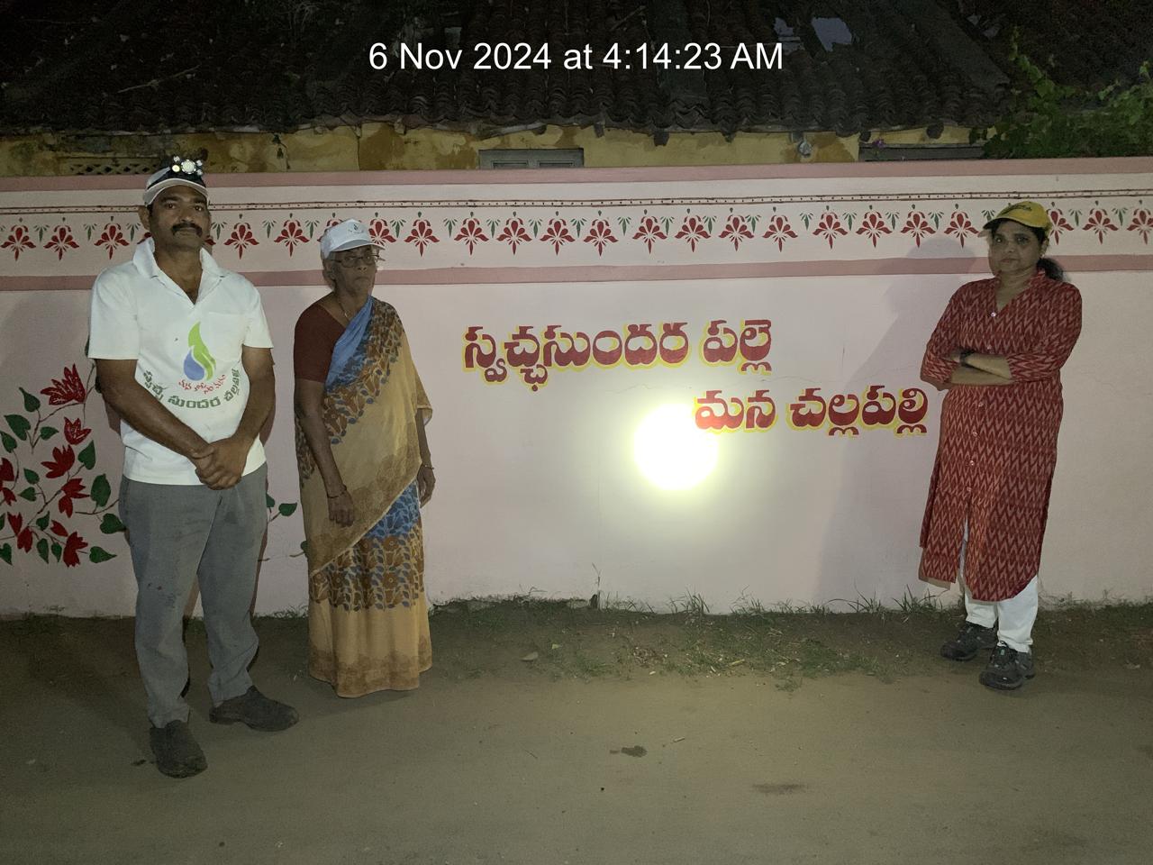 ఊరికీవైపున కుడ్యాలంకరణం చేసి, అందమైన బొమ్మలు చిత్రించి, అటు చివర ఏ పుణ్యాత్ములో మురుక్కాల్వ వంతెనకు 2 వేపులా వేసిన అంకఛండాలపు డంపింగ్ పని పట్టడానికీ-ఆ విధంగా “స్వచ్ఛ-శుభ్ర-సుందర చల్లపల్లి” అంటే ఉళ్ళోకి వచ్చే ఎవరికైనా చప్పున చెప్పకుండానే అర్థం కావడానికే గదా! అందుకని-