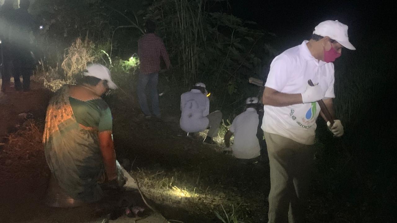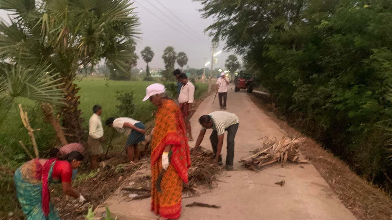 → ఒక ఊపులో – ఒక సామూహిక శక్తితో రోడ్డు ప్రక్కల 200 గజాల పిచ్చి మొక్కలూ, తాడి చెట్లకూ రోజులు మూడిన కోలాహలాన్నీ –