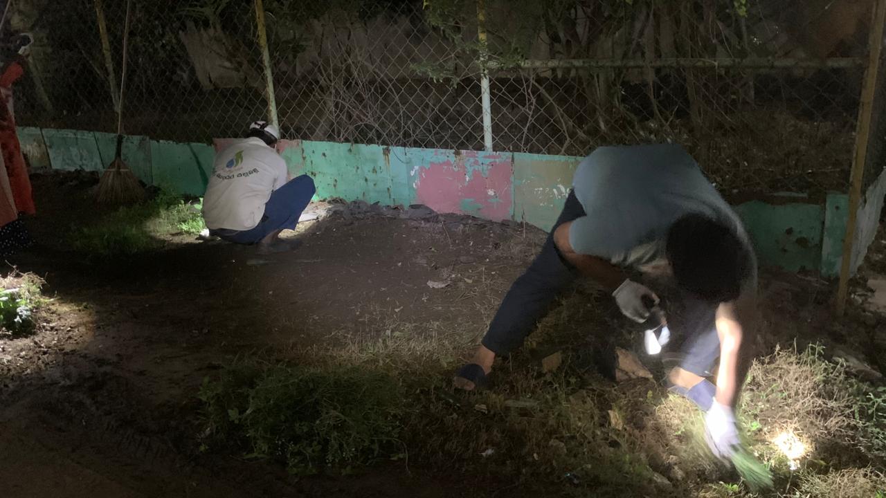 కస్తూర్భాయి ప్రాత ప్రభుత్వాస్పత్రి నుండి 150 గజాల బైపాస్ వీధి - క్రొత్తగా వెలసిన సారా అంగడి దాక 33 మంది గ్రామ సేవక శ్రామికులు పట్టి పట్టి శుభ్రపరచిన బాధ్యతా పూరణం!