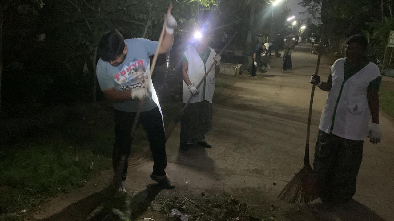 పశువుల పేడలెత్తి, లారీల క్రిందకు గూడ దూరి, గడ్డిని పీకి, ప్లాస్టిక్ వస్తువుల్ని ఏరి, దక్షిణం ప్రక్క ఉద్యానాలను శుభ్రపరచి, హద్దులు దాటిన చెట్ల కొమ్మల్ని శిక్షించి, గ్రామ పరిశుభ్ర సుందరీకరణకు ప్రయత్నించిన శ్రమ కోలాహలం!