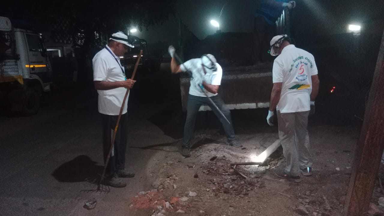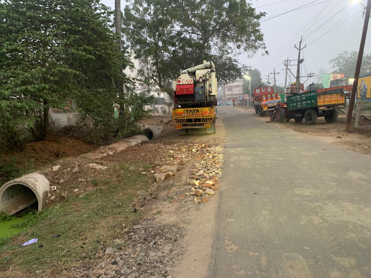 ముందుగా రాతి ముక్కల వేస్టునూ, దానిపైన మట్టినీ అమర్చి, ఇప్పుడు రోడ్డు ఎంత శుభ్రంగా, విశాలంగా కనిపిస్తున్నదంటే - అక్కడిక ఏ రాత్రి హఠాత్తుగా ఏ బడ్డీ కొట్టు వెలుస్తుందో, మళ్లీ వాహనాల నిలుపుదల కవకాశం లేకుండా పోతుందో - అనేంతగా!
