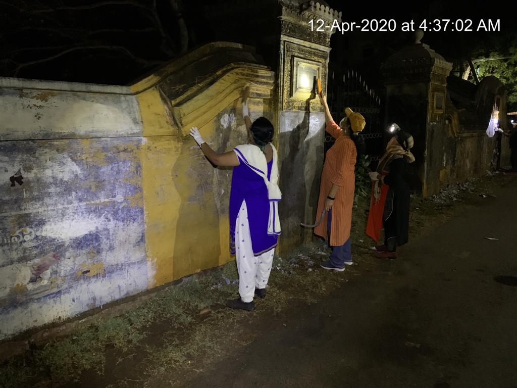 సుమారు 15 మంది కార్యకర్తలకు, సుందరీకరణ బృందానికి బందరు దారికి ఉత్తర దిశలోని అమరావతి రాజా గారి వైజయంతము’(ఇంద్రుని రాచ నగరు) ప్రహరీ ఎన్నెన్నో గోడ పేపర్ల తో అందవిహీనంగా కనిపించింది. అంత పెద్ద గోడ మీద ఎక్కి, ద్వారాలతో సహా వెలుస్తున్న పాత రంగుల్నీ గోకి, కడిగి శుభ్ర పరిచారు.  దీనిమీద కొన్నాళ్ల తర్వాత చూడండి-రంగు రంగుల బొమ్మలు, స్వచ్చ నినాదాలు, చిత్ర లేఖనసందేశాలు వచ్చి, కనులకు మనసుకు విందు చేస్తాయి! ప్రస్తుతానికి, మాత్రం ప్రాతూరి శంకర శాస్త్రి గారి కార్యకర్తల కృషి వివరాల ఫోటో లను వాట్సాప్ మాధ్యమంలో చూడండి!
