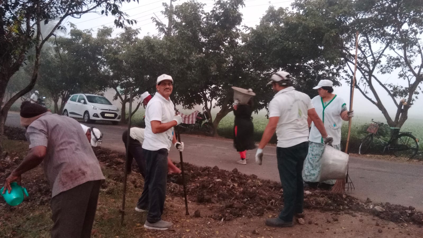 మర్యాదగా పెరగని చెట్ల కొమ్మల్ని శిక్షించి, డ్రైను మట్టి త్రవ్వి, రోడ్డు అంచుపల్లాన్ని పూడ్చి, రోడ్డు భద్రతను కాపాడి, వైశాల్యాన్ని పెంచి, మళ్ళీ సమస్త వ్యర్ధాల్నీ ట్రాక్టరులో నింపే సరికే 4.17-6.17 నడిమి 2 గంటలూ ముగిసినవి.