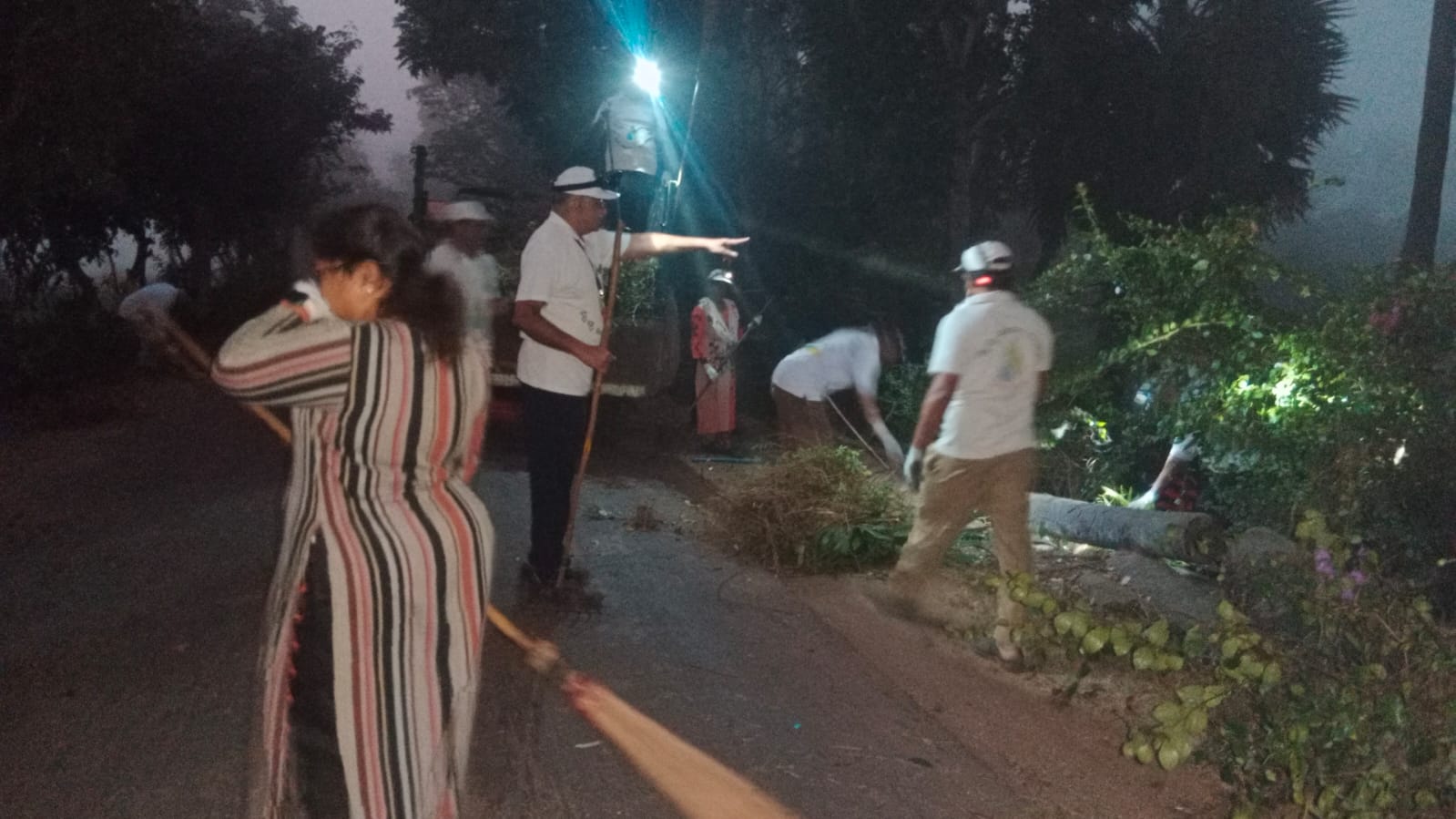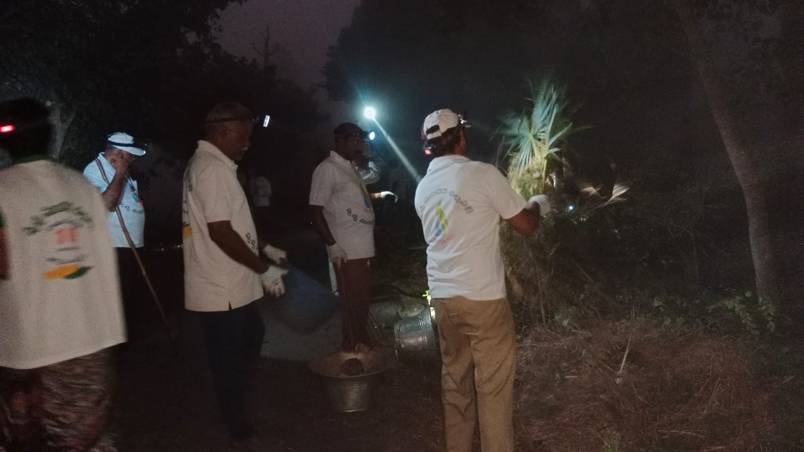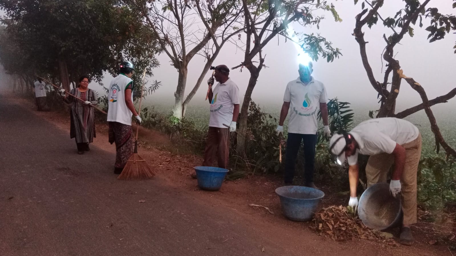 వీళ్లే బాధ్యతగా నాటి పెంచిన చెట్ల ఆకులూ, తాటి, ఈత చెట్ల తాలూకు వ్యర్ధాలూ ఉండనే ఉంటాయి - ఐదారుగురు చీపుళ్ల కార్యకర్తలు శుభ్రం చేసుకొనడానికి!
