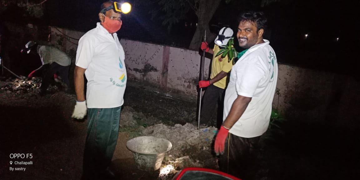 NTR పార్కు సమీపంలో తమ (పని) ముట్ల బండిని నిలిపి, పలుగులు, పారలు, చీపుళ్లు, చెక్కుడు పారలు ధరించిన స్వచ్చ సైనికులు ఆ ప్రాంతపు మురుగు కాల్వల కాలుష్యం మీద అక్షరాల యుద్ధ మే చేశారు. విజయా కాన్వెంటు నుండి పార్కు దాక- గతంలో పంచాయతి కార్మికులు త్రవ్వి, లాగి, గుట్టలు పెట్టిన తడి మురుగు మట్టి ఎండిపోగా, ఆ గుట్టలను త్రవ్వి, దారి ప్రక్క పల్లాలలో సర్ది, ఆ ప్రాంతపు అందానికి అందం, రహదారి భద్రతకు భద్రత కలిగించారు.