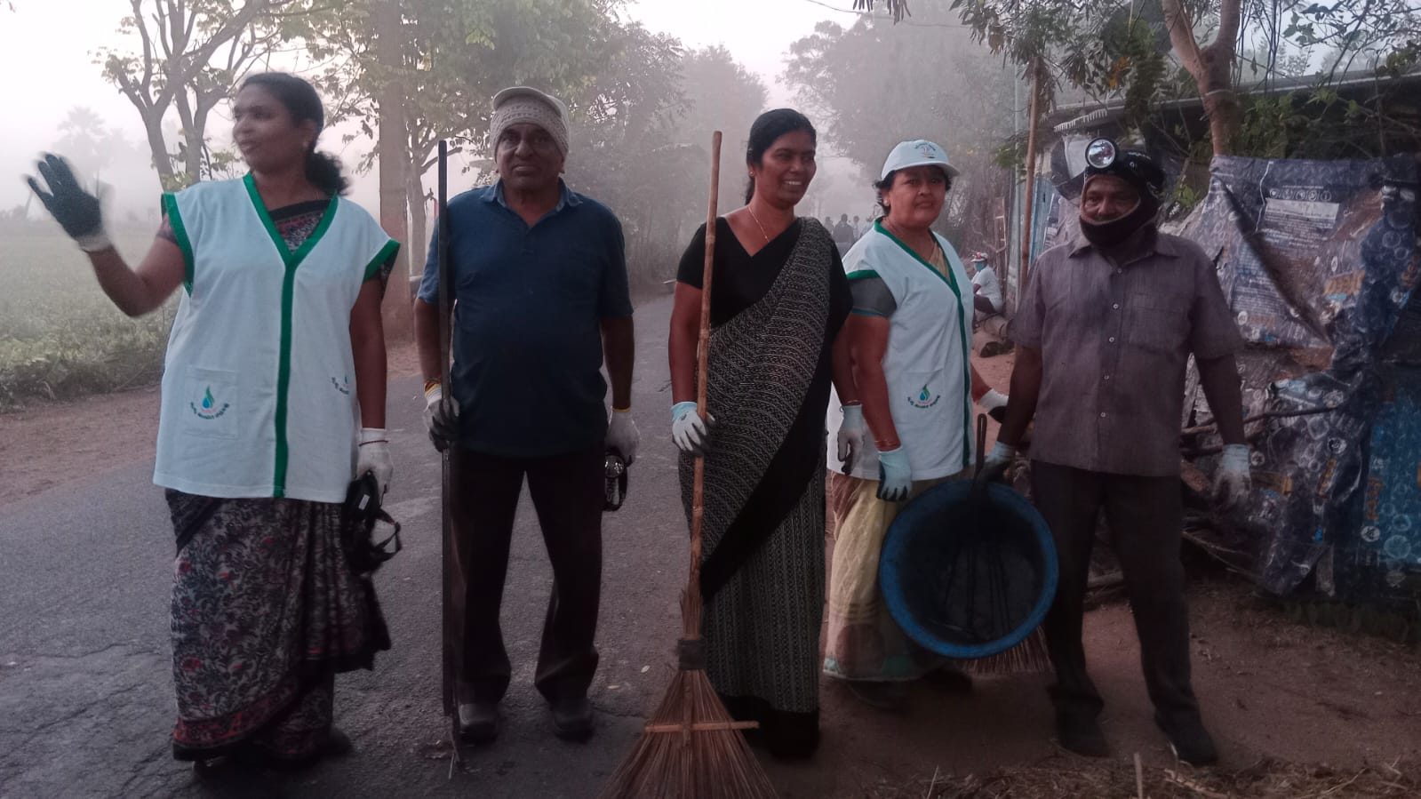 గడ్డి - పిచ్చి మొక్కల్ని హతమారుస్తూనో - గతంలో తామే నాటి, బ్రతికించి, పెంచిన చెట్లను సుందరీకరిస్తూనో - 5-6 గురు 150 గజాల వీధిని ఊడుస్తూనో - 5 గురైతే వ్యర్ధాల్ని ప్రోగులు చేసి ఎత్తుతూనో -