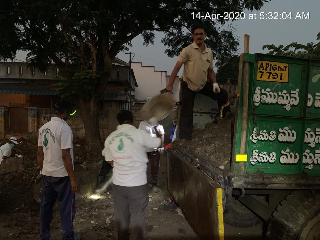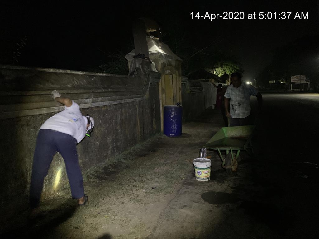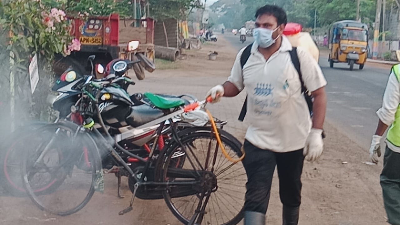 పంచాయతీ వారు ఇచ్చిన  యాంటీ సెప్టిక్ లోషన్ ను  స్ప్రేయర్ తో ఆ ప్రాంతమంతా చల్లారు.