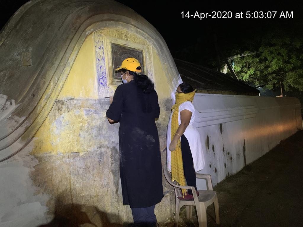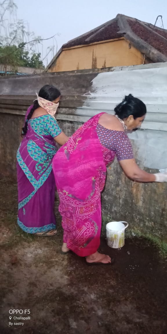 సుందరీకరణ కార్యకర్తలు అమరావతి రాజా గారి ప్రహరీ గోడను నేడు కూడా శుభ్రంగా గీకి, ప్రైమరు ఆ పైన రంగును వేశారు.
