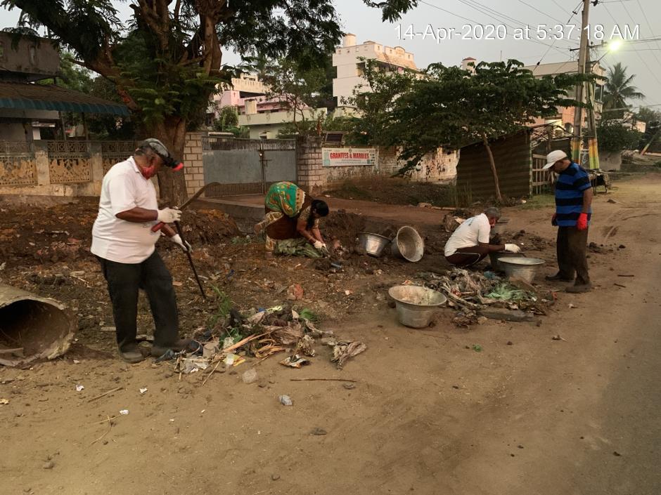 కొంత మంది కార్యకర్తలు రోడ్డు కిరువైపులా గతంలో పంచాయతీ వారు డ్రైన్లను తవ్వి ఒడ్డున వేసిన మట్టిని అందంగా సర్దారు. వాటిలో ఉన్న ప్లాస్టిక్ కాగితాలను, మందు సీసాలను తీసి ట్రాక్టర్ లో లోడు చేసి డంపింగ్ యార్డు కు తరలించారు.