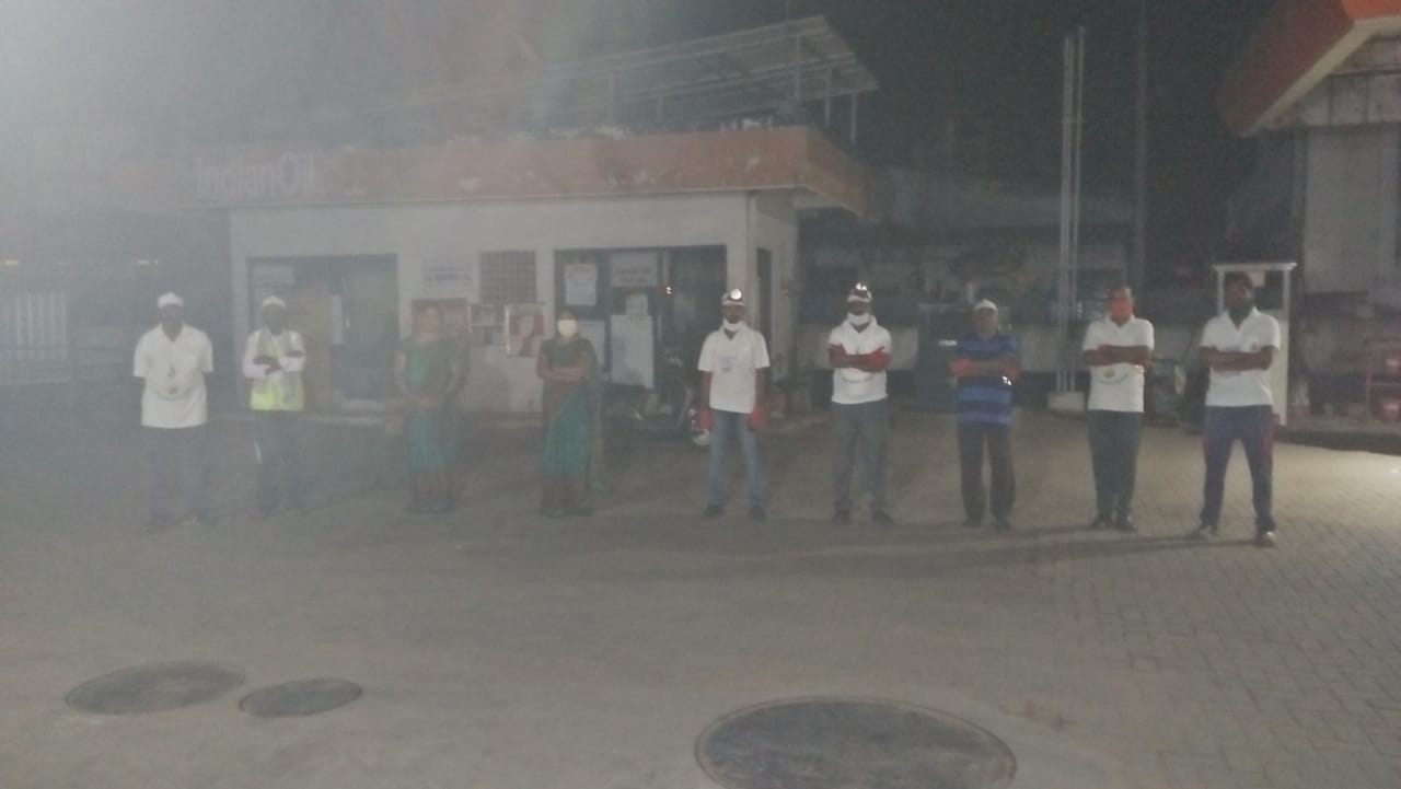 విజయవాడ రోడ్డు లోని పెట్రోలు బంకు వద్ద టైల్స్ పై ఉన్న ఇసుకను కొంతమంది ఊడ్చి ఎత్తి వేశారు. బస్ షెల్టర్ ముందు భాగాన్ని కూడాశుభ్రం చేశారు.