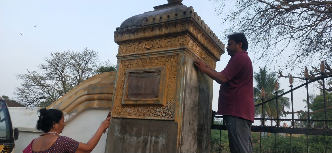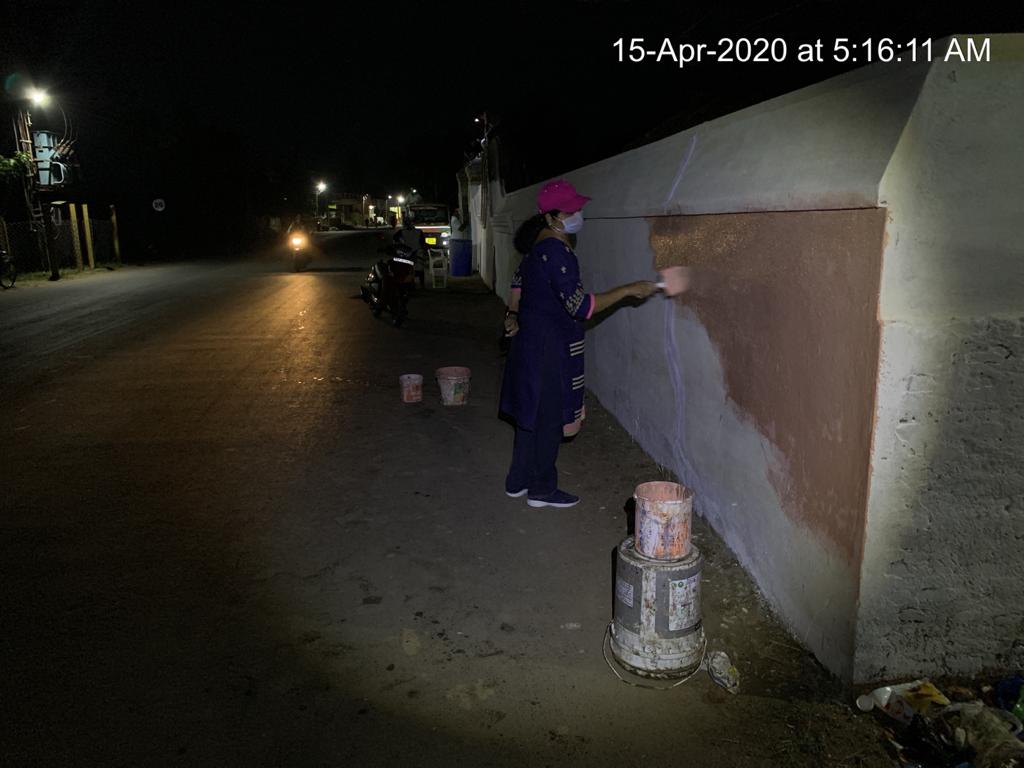 సుందరీకరణ బృందం చిన్న రాజా గారి గోడను శుభ్రం చేసి రంగులు వేసే పనిలో నిమగ్నమయ్యారు.
