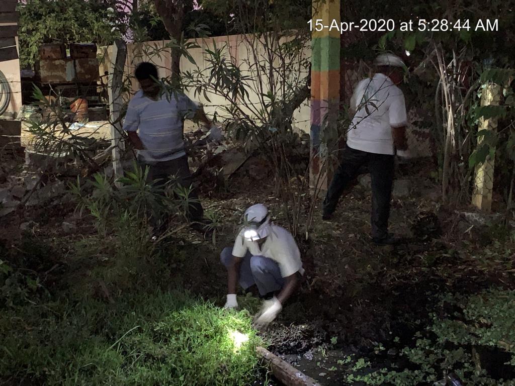 డ్రైనేజి ను శుభ్రం చేస్తున్న కార్యకర్తలు.