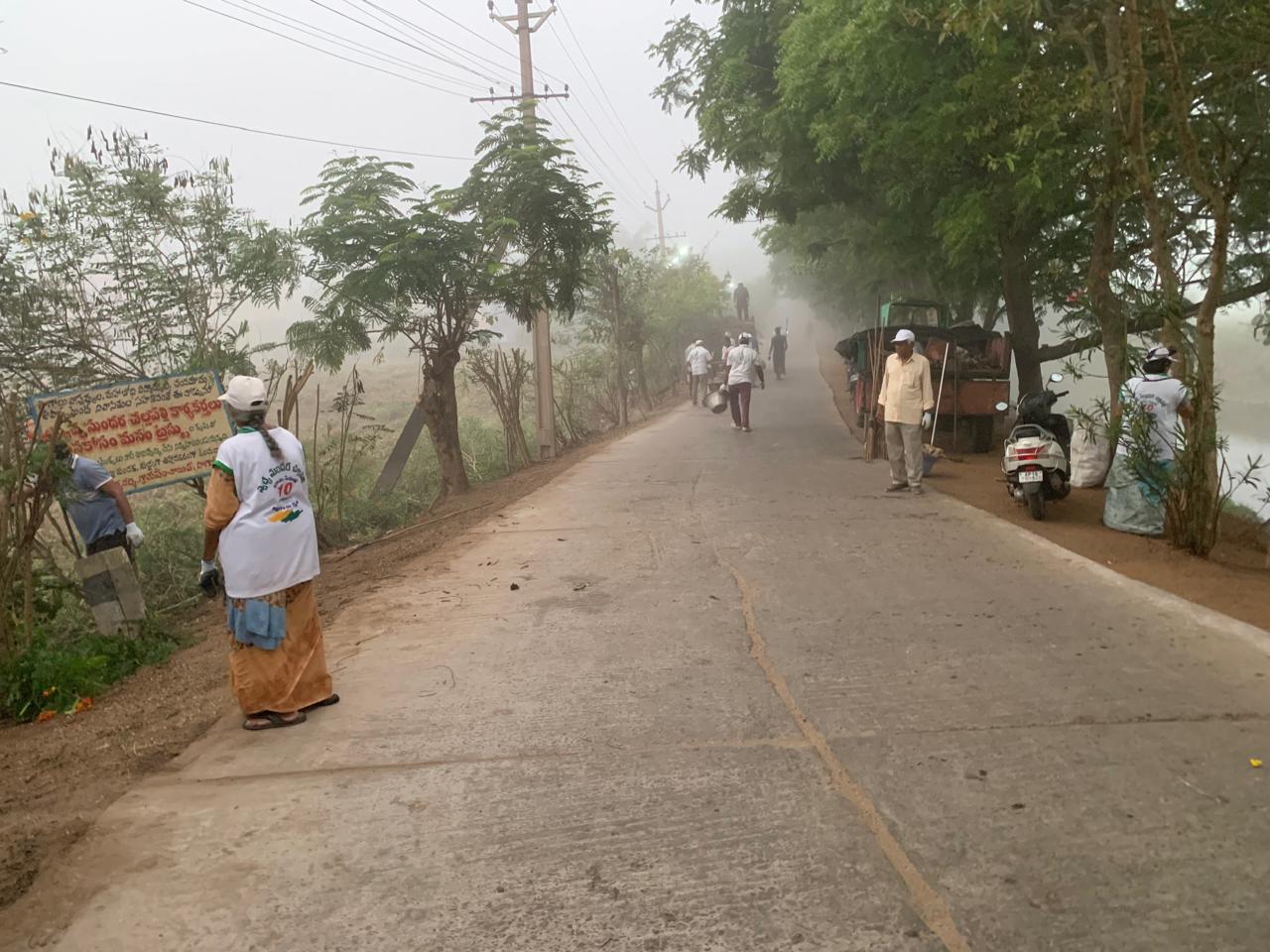 అదేంటో - 50/60 గజాల రోడ్డు బాగుచేస్తేనే పెద్ద ట్రాక్టరు పట్టనంత తుక్కు. అక్కడికీ కొన్ని కొమ్మల్ని మినప చేను రక్షణగా సర్దారు! నేటి స్వచ్ఛ సేవల నడుమ ఐదారుగురు కార్యకర్తలు నిన్నటిదాక జరిగిన రహదారి పనుల జ్జాపకాల్లో ఉన్నారు. అది 50 రోజుల కృషి. వీధి నిడివి బట్టి చూస్తే ఈ పాగోలు రోడ్డు పనులు 2 వారాల్లో పూర్తి కావాలి.