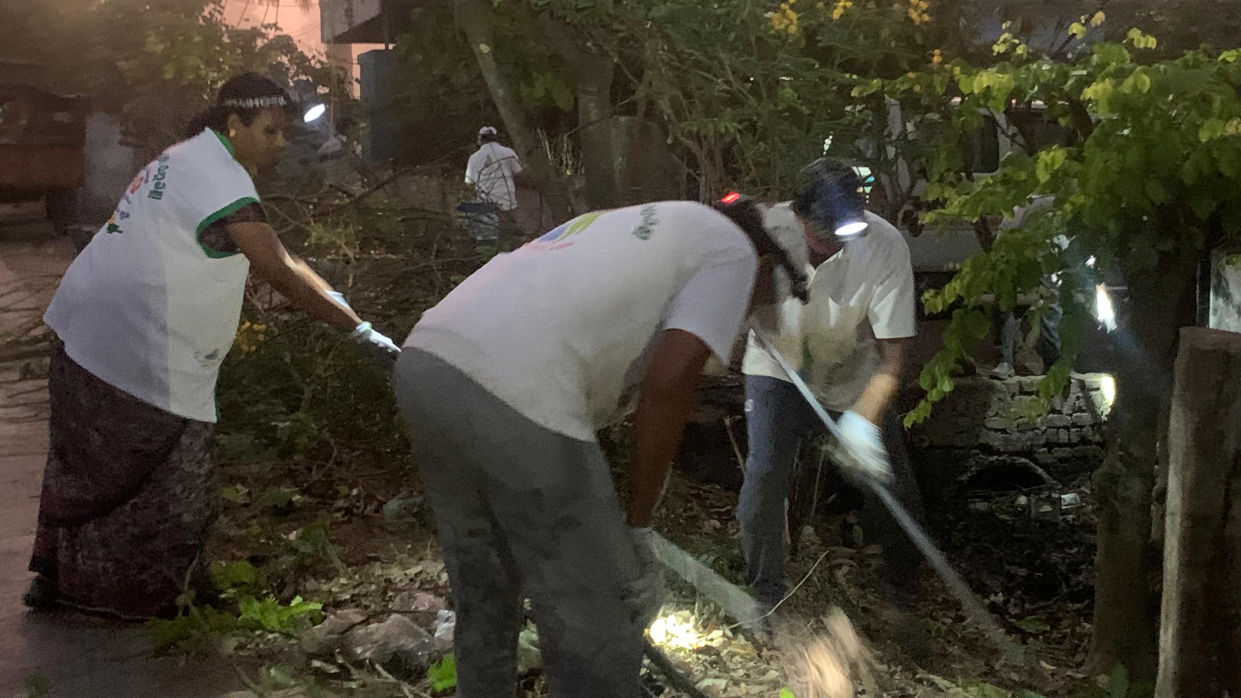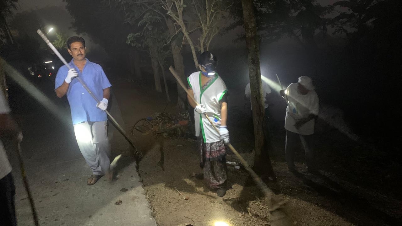 పెద్దగేటు వద్ద గాని, 100 గజాల రోడ్డు మీద గాని మహిళా కార్యకర్తలు ఊడ్చిన వ్యర్ధాల పోగులు 6.30 కు కూడ అక్కడే మిగిలిపోయినవి.