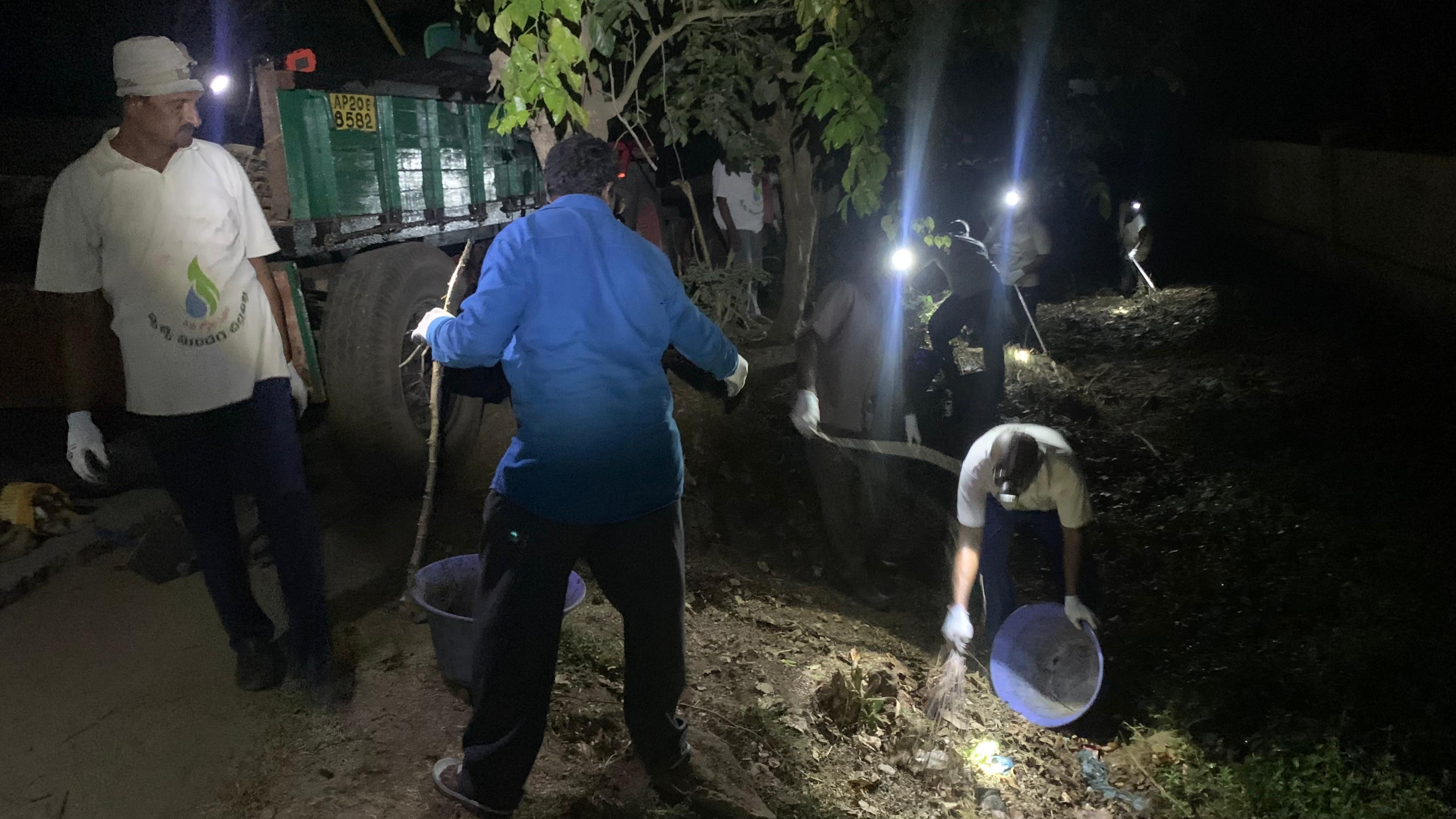 ఇక మిగిలిన కార్యకర్తలా? వీళ్ళకేంలోటు? - సాంతం చివరి వీధి గేటు వద్ద కావలసినంత వ్యర్ధాలుండగా! మహిళా కార్యకర్తలకైతే ఈ 150 గజాల సిమెంటు రోడ్డూ – ఉత్తరపు లోతైన డ్రైను గట్టూ చాల పని చూపెట్టాయి!