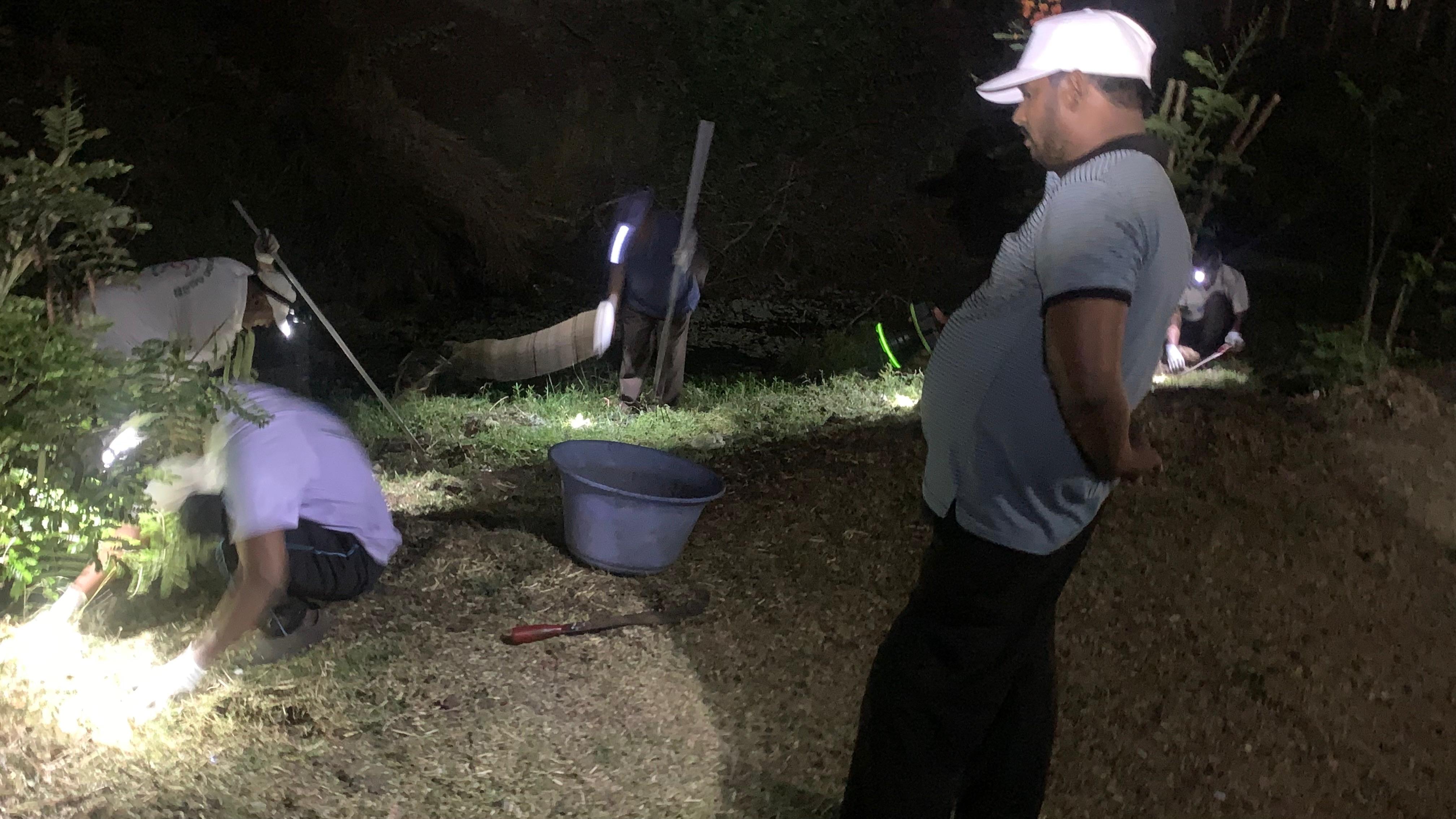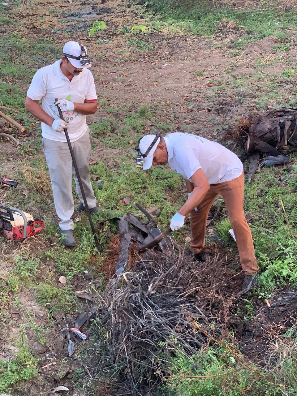 కొమ్మలు, రెమ్మలు దిట్టమైన తాటిబొందలు కటింగ్ మిషన్ తో కత్తిరించి పక్కన పెట్టడం జరిగింది.