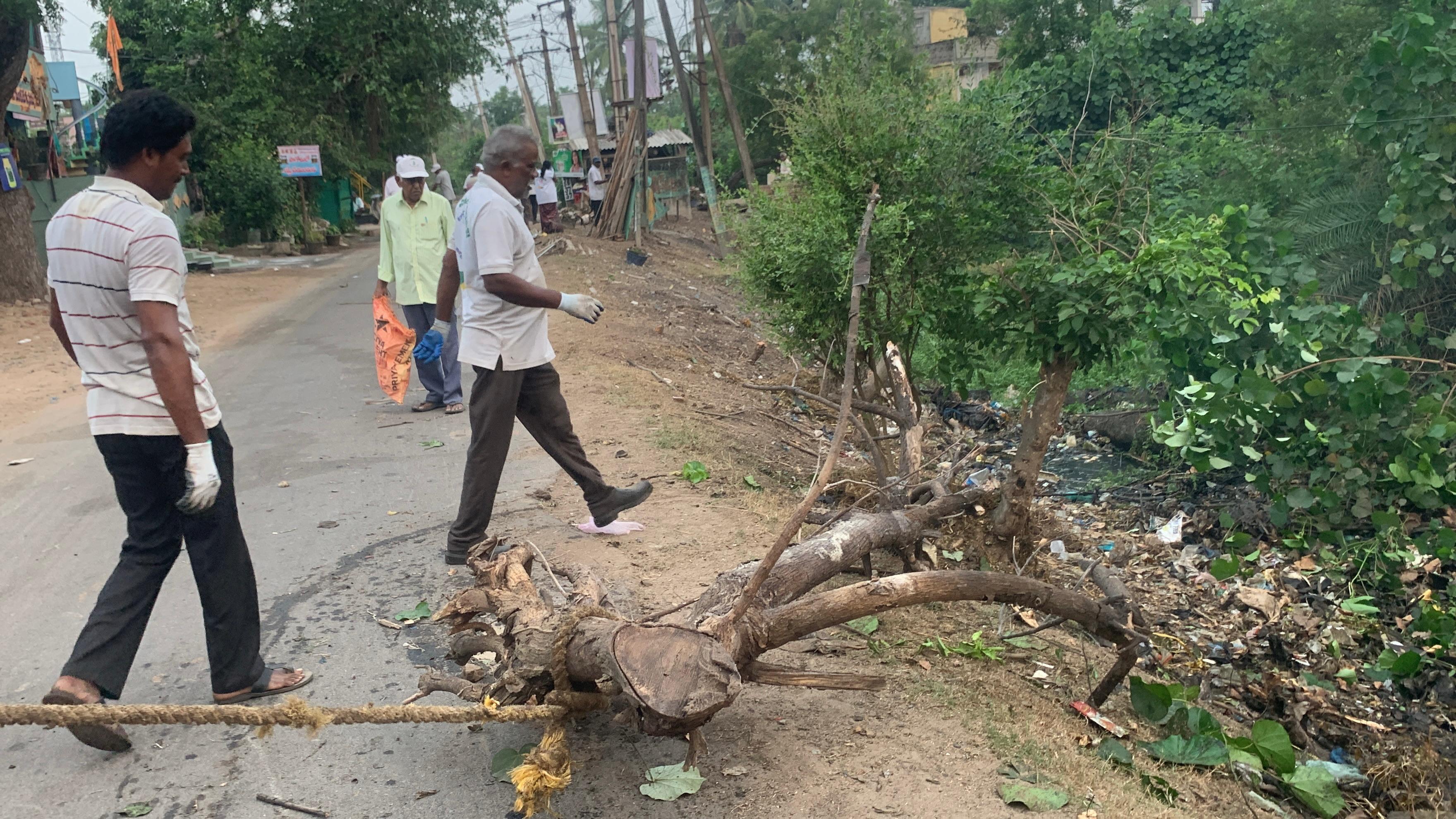 చూసేవాళ్ళకేమో ‘ఈ కాస్త లెక్కే గదా ఇందరు బాగు చేసింది’ అనిపిస్తది. కాని అన్ని చెట్లను కోసి, ఎండు చిక్కు కొమ్మల్ని నరికి, త్రాళ్లతో ఒడ్డుకు చేర్చి, గుట్టలు పేర్చింది ఐదేసి వందల కూలి తీసుకొనే కార్మికులు కారే - మరో గంటలో పాఠశాలల డ్యూటీకి, ఆస్పత్రి పనులకీ, ఇతర వృత్తులకీ పోవలసిన కార్యకర్తలే!