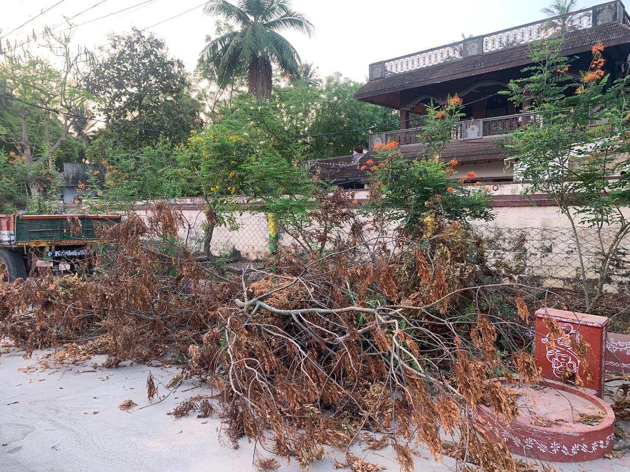 - అమ్మేసిన పింగళి వారి ఉద్యానంలో, మూల్పూరి వారి ఉద్యానంలో నరికేసిన పెను వృక్షావశేషాల్ని ట్రాక్టర్ లో కెక్కించి,