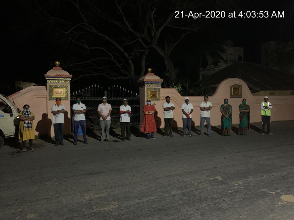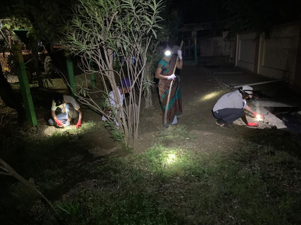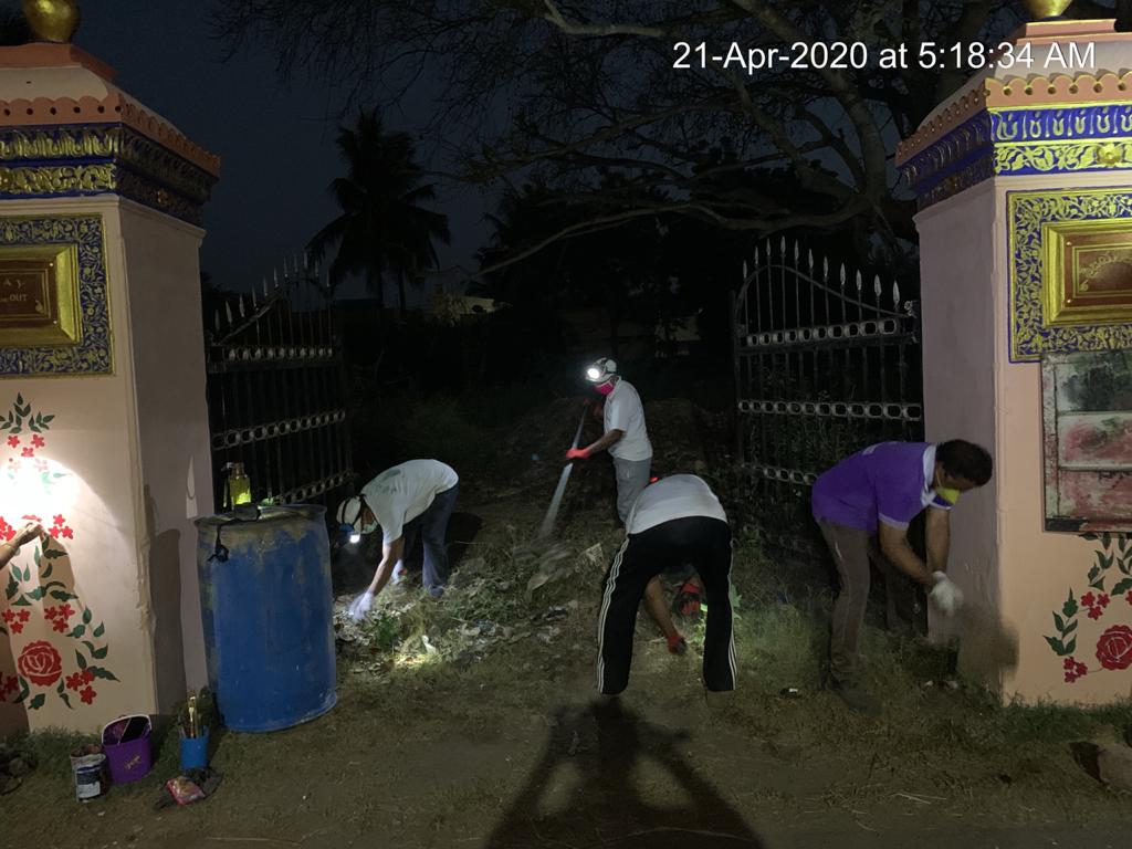 - 20 మందికి పైగా కార్యకర్తల్లో సగమంది రహదారి దక్షిణంగా ఉన్న ఉద్యానవనంలోను, మిగిలిన వారు ఉత్తర దిశలోని వైజయంతం లోపల దీక్షాదక్షతలతో పనిచేసిన విధానం చూసి తీరాల్సిందే. ఉత్తరపు గోడ బారునా ఎండుతున్న పిచ్చి – ముళ్ళ మొక్కల్ని, గడ్డిని నరికి, పీకి, రకరకాల వ్యర్ధాలను గొర్రులతో లాగి, చీపుళ్లతో ఊడ్చి, ఆ గుట్టలను తరలించే సమయం చాలక ఇప్పటికి వదిలి వేశారు. రోడ్డుకు దక్షిణాన ఫెన్సింగ్ లోని ఉద్యానాన్ని కొందరు మహిళలెంత క్షుణ్ణంగా బాగుపరచారంటే – ఇప్పుడక్కడ ఒక్క గడ్డిపరక లేదు., కలుపు లేదు. నట్టిల్లులా శుభ్రంగా – మరొకసారి చూడాలనిపించేంత అందంగా రూపొందింది. (శాస్త్రి గారి వాట్సాప్ చిత్రాలలో గమనించండి!)