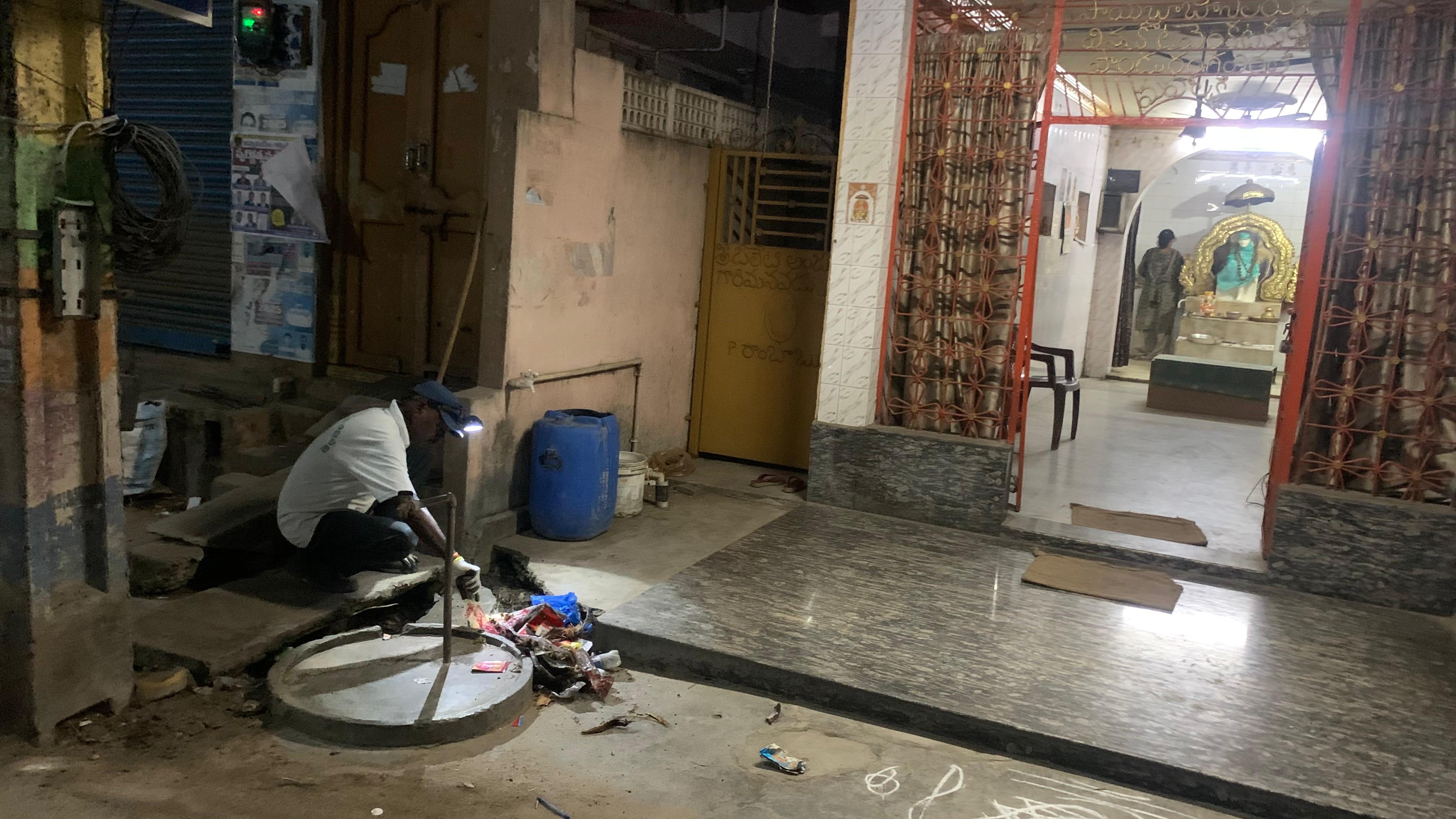 3) 3 చోట్ల మురుగు కాల్వల్ని శుభ్రపరుస్తూ