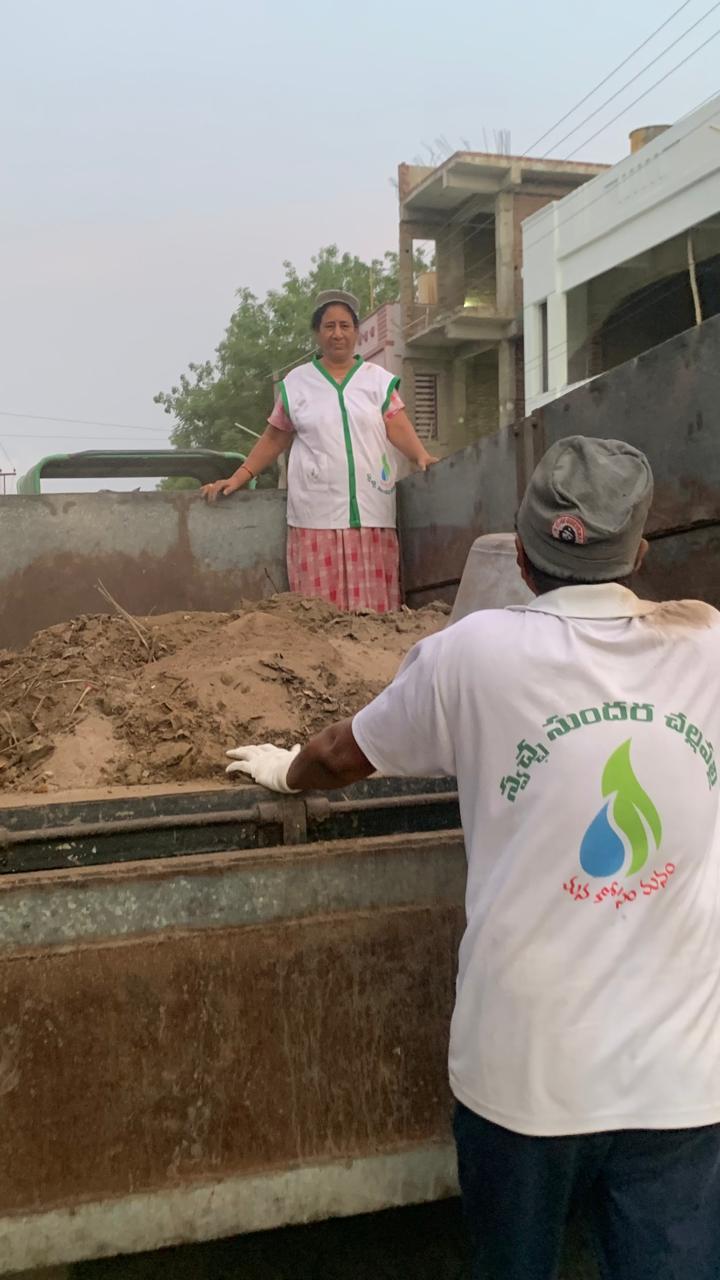 5) వ్యర్ధాల్నీ, ముఖ్యంగా ఇసుక – దుమ్ము మిశ్రాన్ని ట్రాక్టర్ లోకి ఎగుమతి చేసుకొంటూ,