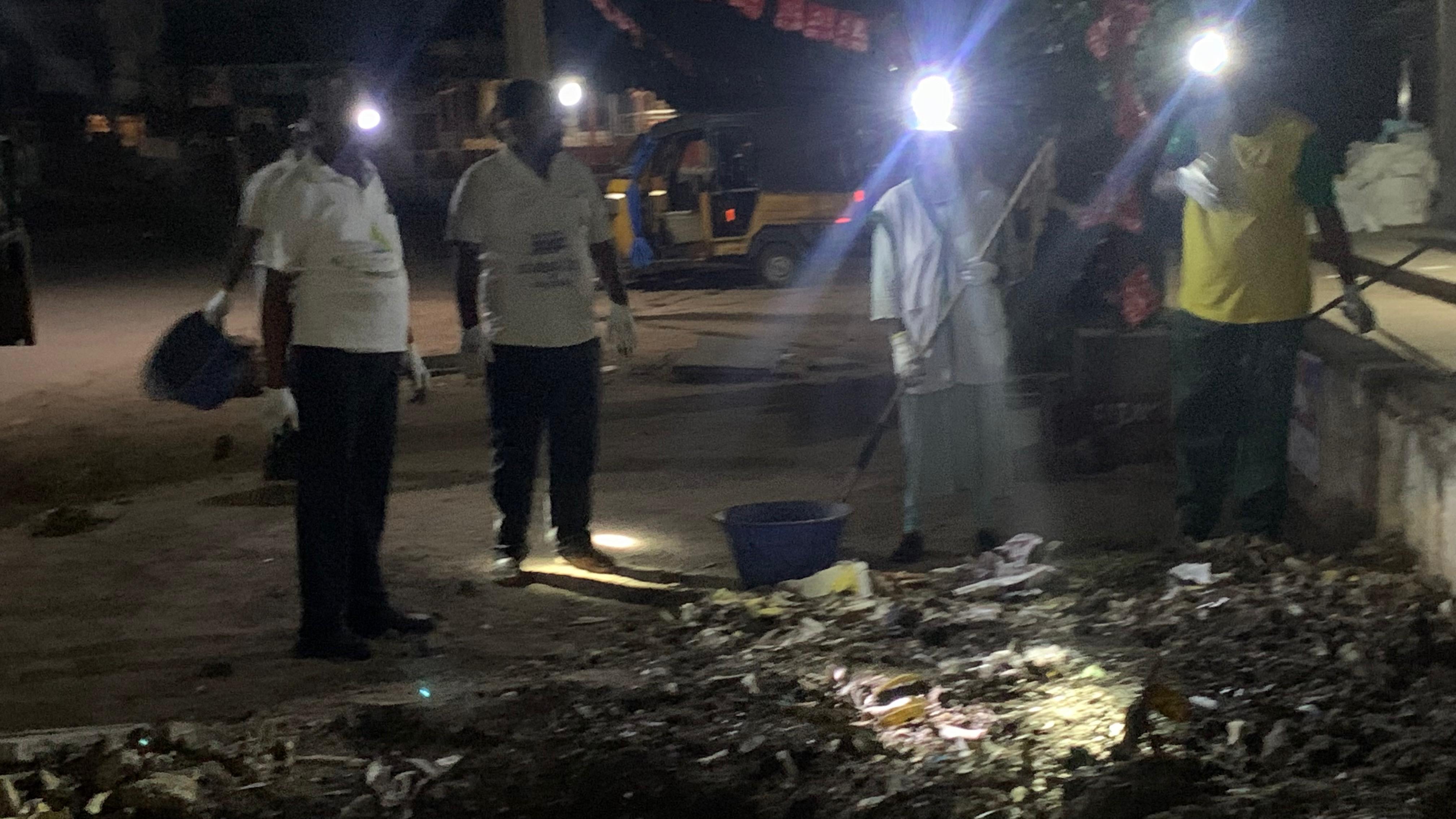 వేకువ జామున 4.19 ని.లకు బస్టాండు ప్రాంగణంలో 10 మంది కార్యకర్తలతో ప్రారంభమయిన స్వచ్ఛ సేవలు కొద్ది సేపట్లో ఒక్కొక్కరుగా చేరికతో 35 మందితో బస్టాండు వెనుక భాగాన్ని కార్యకర్తలు చూడచక్కగా తయారుచేశారు.
