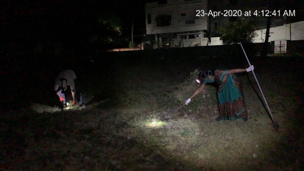 - ఎక్కువ మంది కార్యకర్తలకు వైజయంతం లో తట్టు ప్రాంతం చేతుల నిండా ఊపిరాడనంత పని కల్పించింది. అతిపురాతనమైన రావి చెట్టు ఆకులే బళ్ళ కొద్దీ ఉన్నాయి. ఒక మూల పల్లంలో మినీ డంపింగ్ యార్డు, కొబ్బరి చెట్టు చుట్టూ దట్టంగా పెరిగిన ముళ్ళ చెట్లు, చిన్నా చితకా పనికిరాని పిచ్చిమొక్కలు.... వీళ్ళ ధాటికి కాలుష్యాలన్నీ మాయమై సువిశాల ఆవరణంతా ఇన్నేళ్ల తర్వాత చూడముచ్చటగా ఉన్నది.