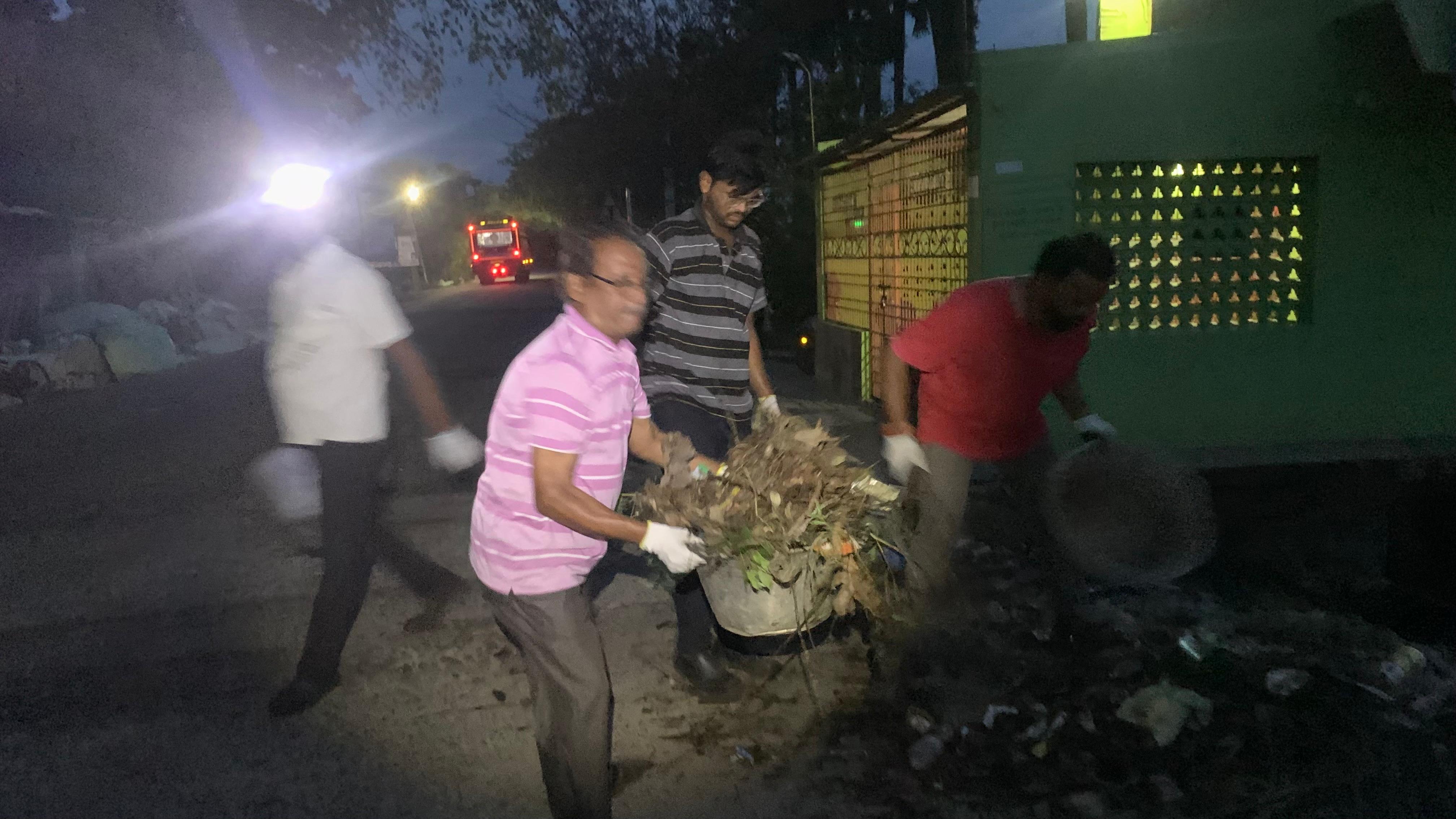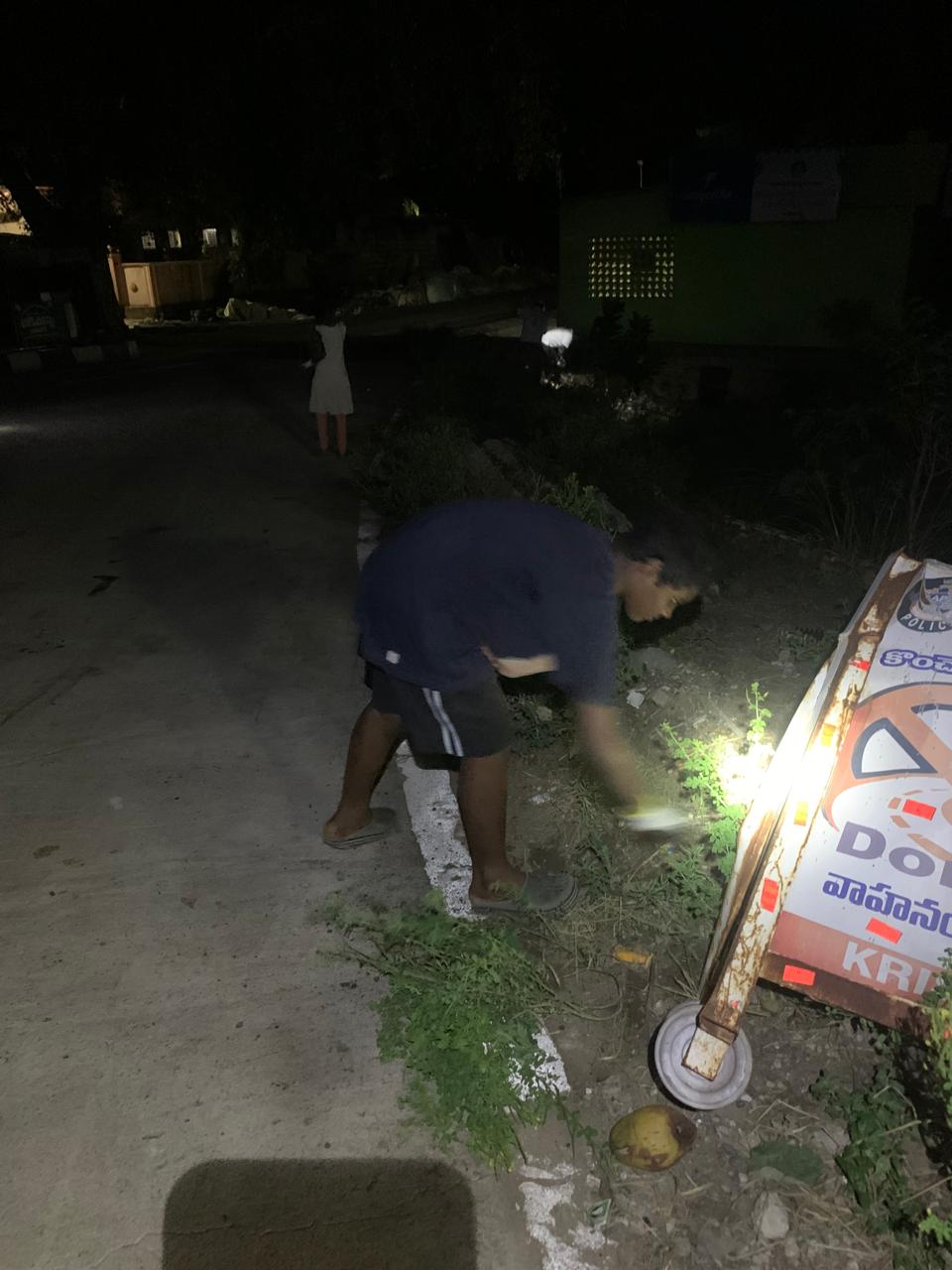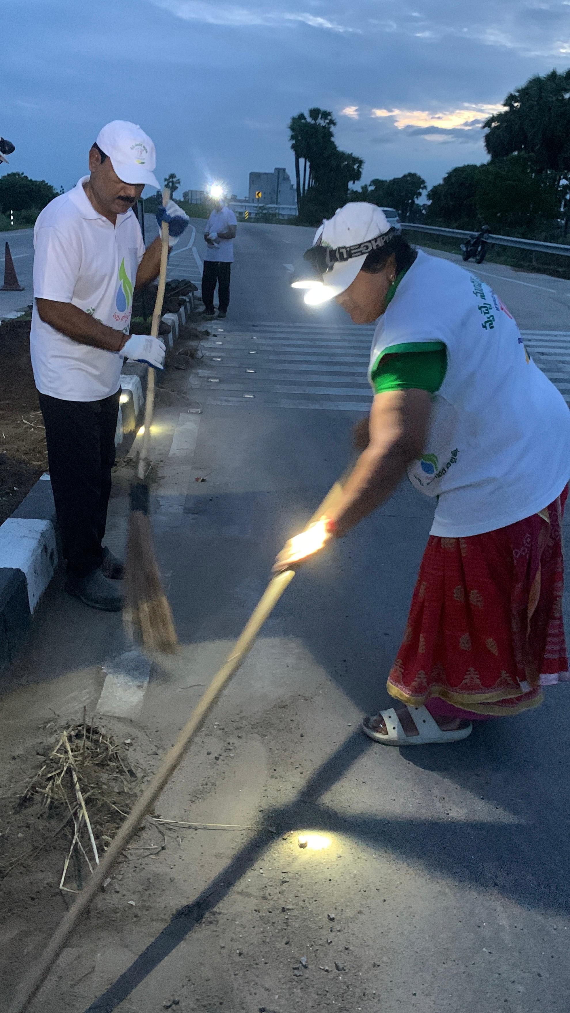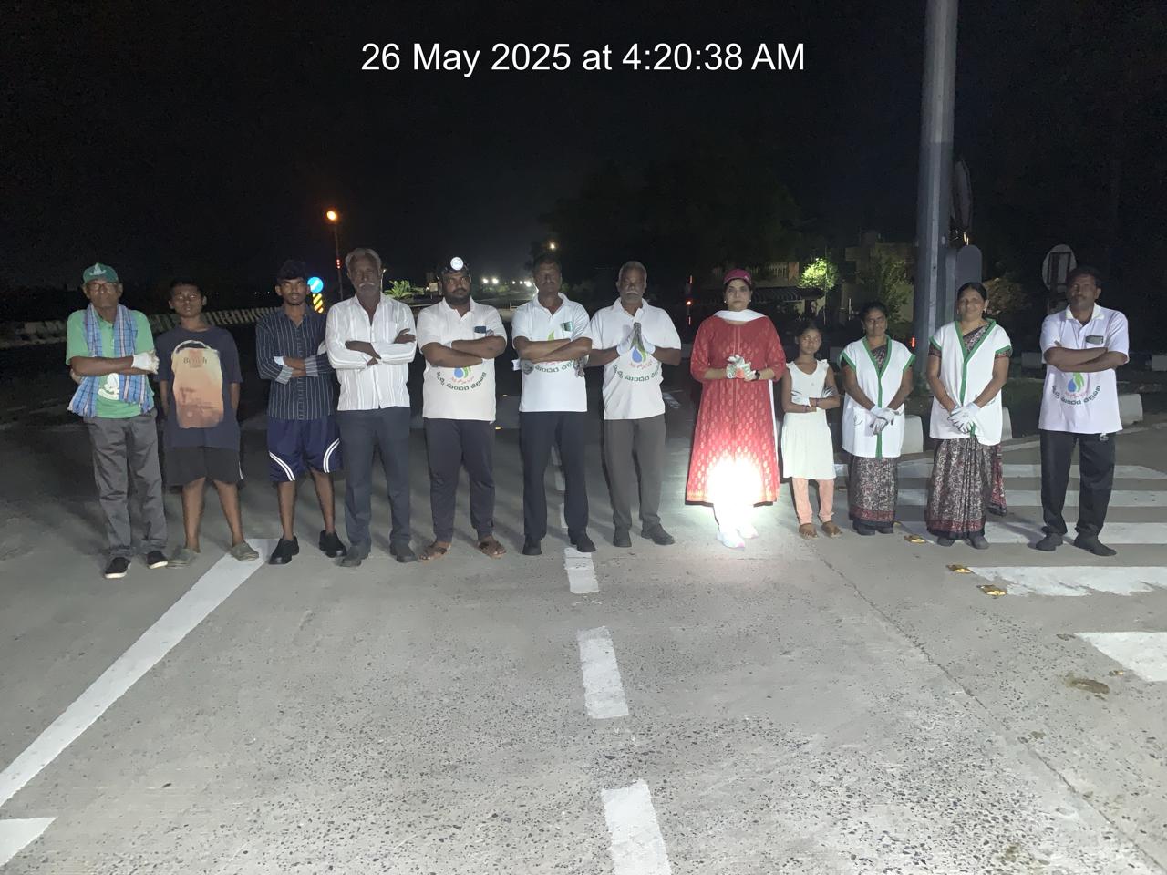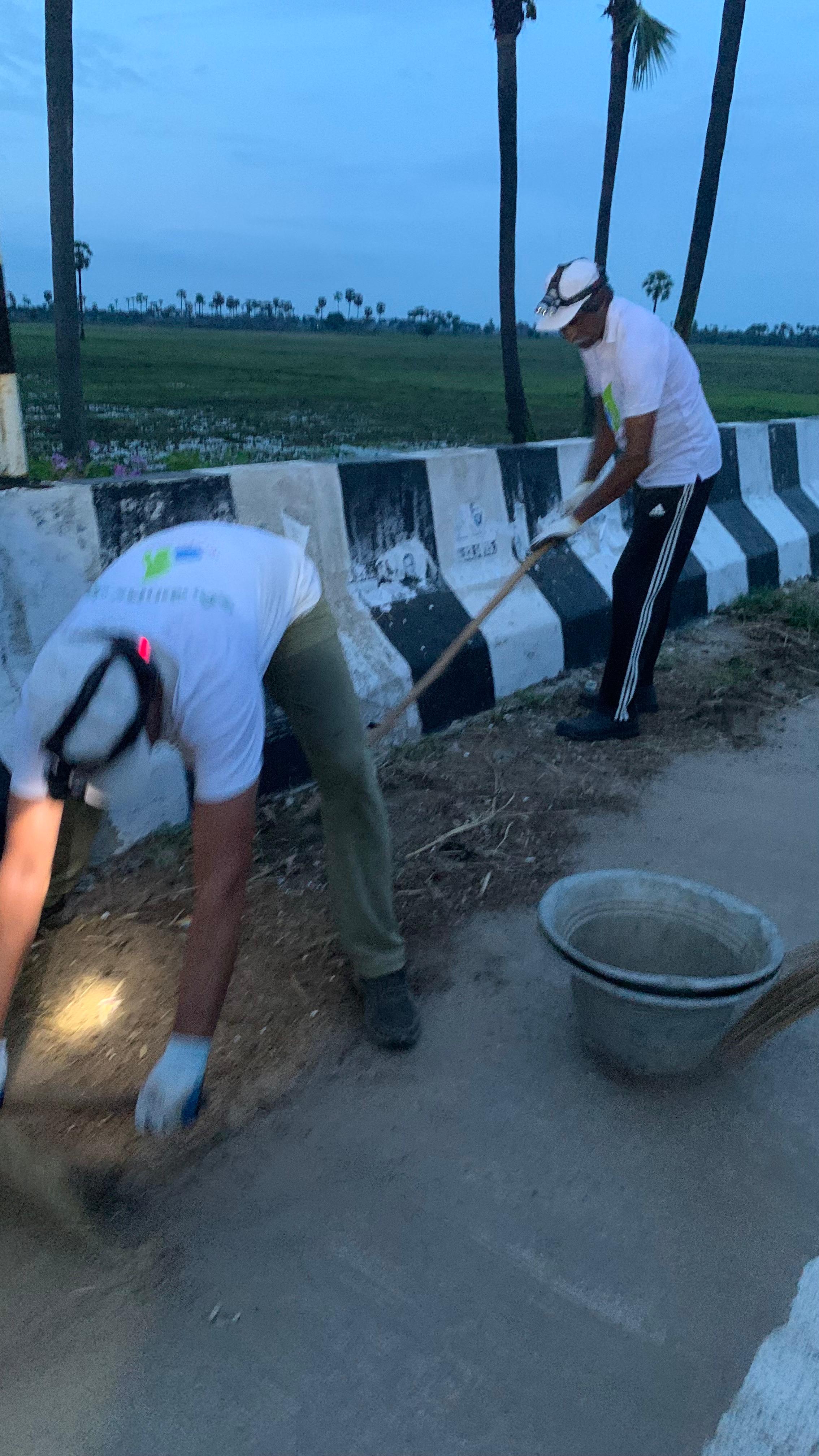 వేకువ ఝామున 4.20 ని॥కు 13 మందితో ప్రారంభమయిన స్వచ్ఛ సేవ మరికొద్ది సమయానికి 35 మంది చేరికతో ఆ ప్రాంతమంతా పని సందడి నెలకొంది. హైవేలో భారీ వాహనాలలో వెళ్ళే డ్రైవర్లు తెల్లవారుఝామున జరుగుతున్న ఈ శ్రమదాన వేడుకను, వాహనములను నెమ్మదిగా పోనిస్తూ, ఒకింత ఆశ్చర్యానికి గురౌతు వెళ్ళటం మా దృష్టిని దాటిపోలేదు.