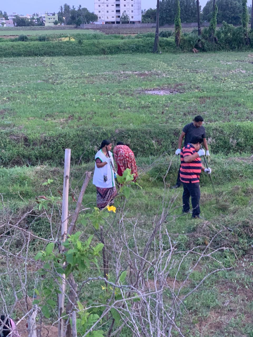 పెరుగుతున్న మొక్కల చుట్టూ కలుపు తీసి శుభ్రం చేయడం, క్రింది భాగంలో పెద్ద మొక్కలు పెట్టే ప్రాంతం కూడా పిచ్చి మొక్కలను తీసి శుభ్రపరచడం జరిగింది.