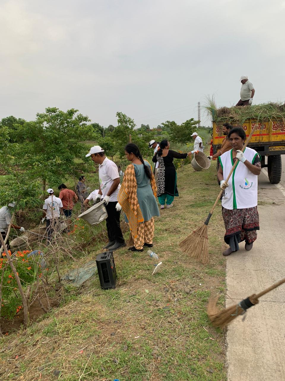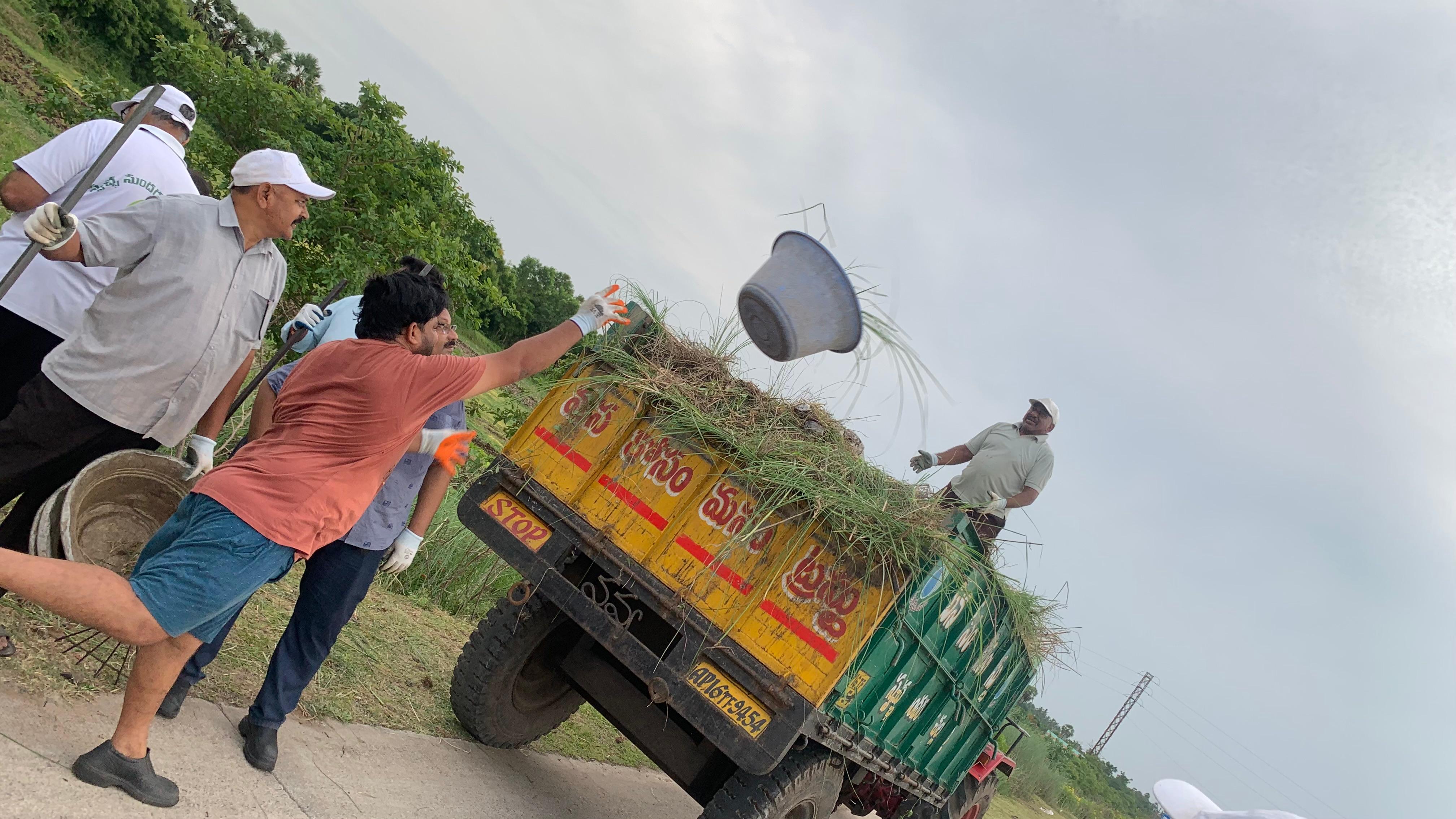 హైవే రోడ్ లోని కళ్యాణ మండపం ఎదురుగా దారి పొడవునా రోడ్డు క్రింది భాగంలో ఏపుగా పెరిగిన కలుపు గడ్డిని శుభ్రం చేస్తూ, అక్కడక్కడా ఉన్న ముళ్ల పొదలను తొలగించడం, అంతకు ముందు పెరిగి వంగిపోయిన నీడనిచ్చు మొక్కలకు కర్రలను పాతి నిటారుగ ఉండే లాగున కట్టి సరిచేయడం జరిగింది.