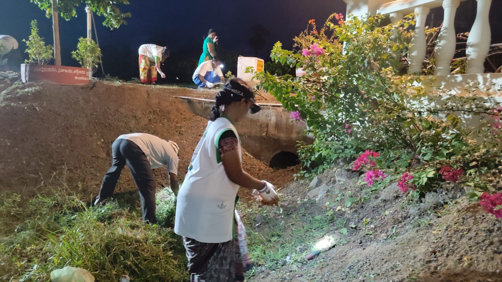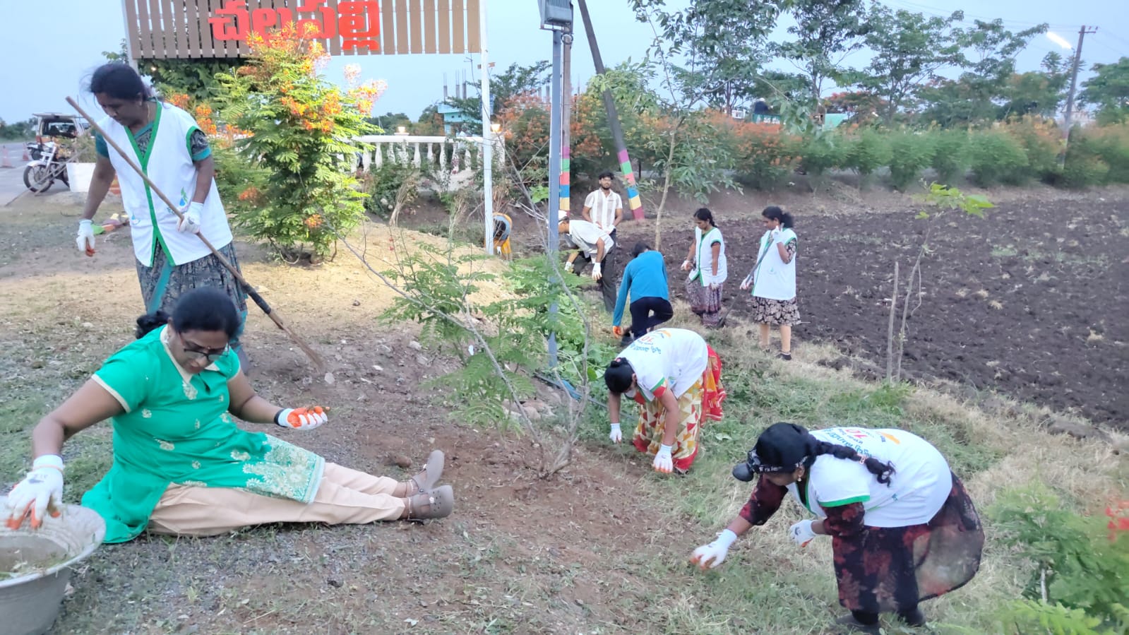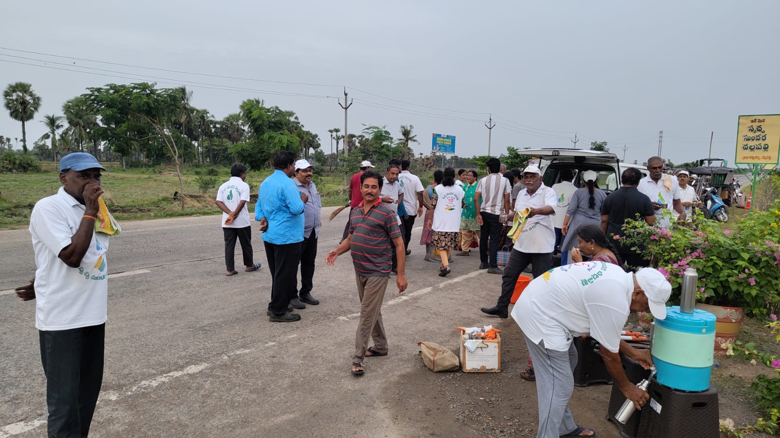 వేకువ జాము 4.15  నిముషాలకు 19 మంది కార్యకర్తలతో హైవే రోడ్డు పై స్వాగత ద్వారం సమీపంలో పని మొదలు పెట్టబడింది. అక్కడ స్వాగత ద్వారం గోడ క్రింది భాగాన పిచ్చి గడ్డిని, అక్కడే బోగన్  విలియా మొక్కలలో కలుపును తీసి శుభ్రపరచడం జరిగింది.