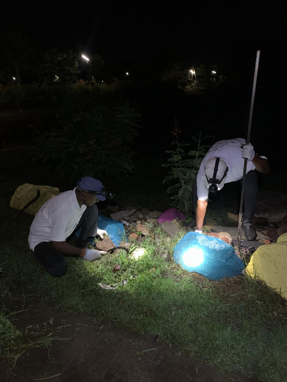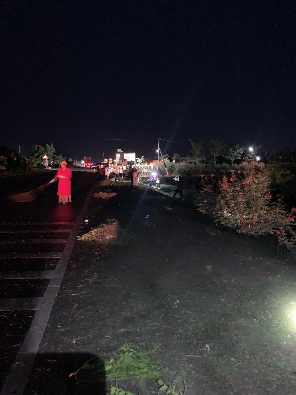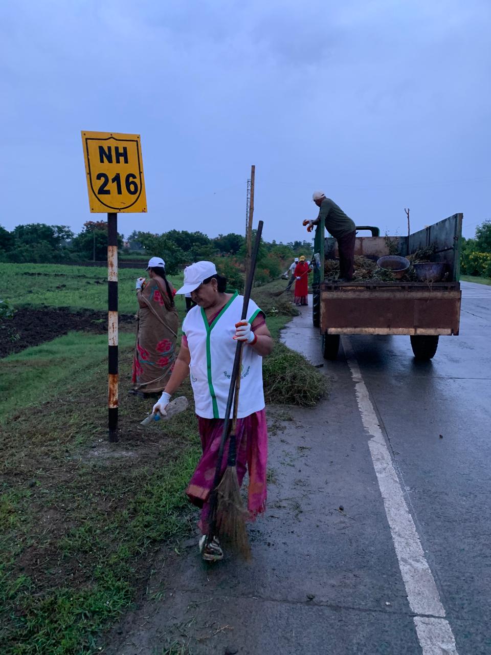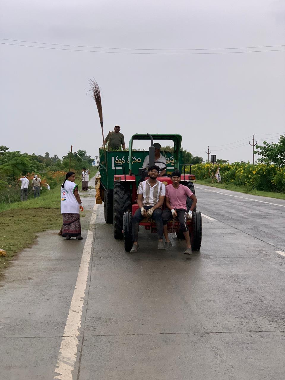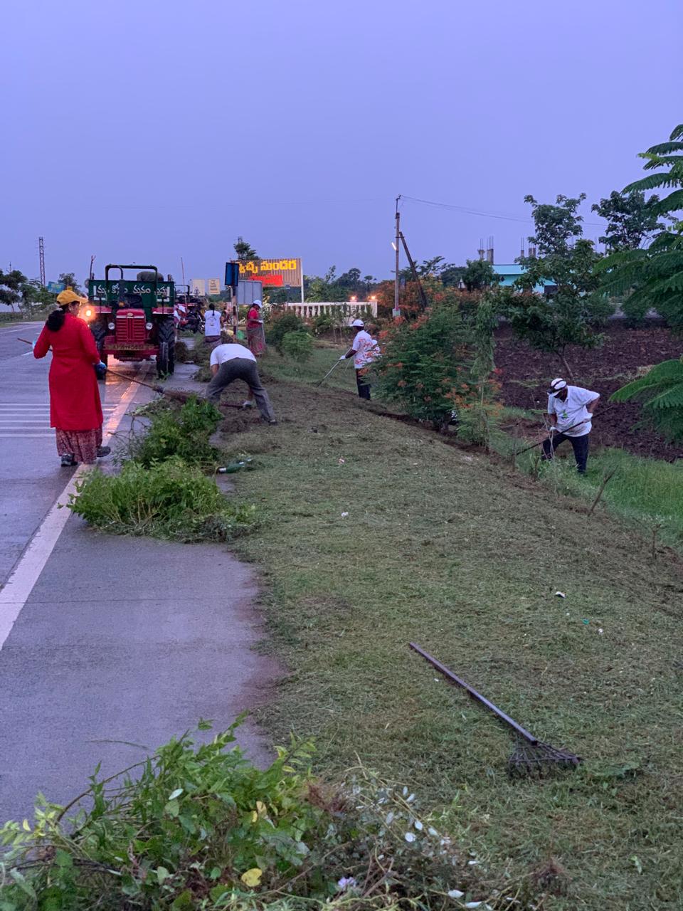 హైవే కి ఉత్తరం వైపున రోడ్డుకు దిగువ భాగంలో మొక్కల మధ్యలోని కలుపును, పిచ్చి చెట్లను, త్రాగిపారేసిన మద్యం సీసాలను తొలగించినది కొందరు కార్యకర్తలైతే, రోడ్డుకు ఎగువ భాగాన పెరిగిన పిచ్చి గడ్డిని మిషన్ తో కట్ చేసినది ఒక కార్యకర్తైతే దాని వెంట గుట్టలుగా దంతులతో, చీపుళ్ళతో ప్రోగు చేసినది మరికొంతమంది కార్యకర్తలు.