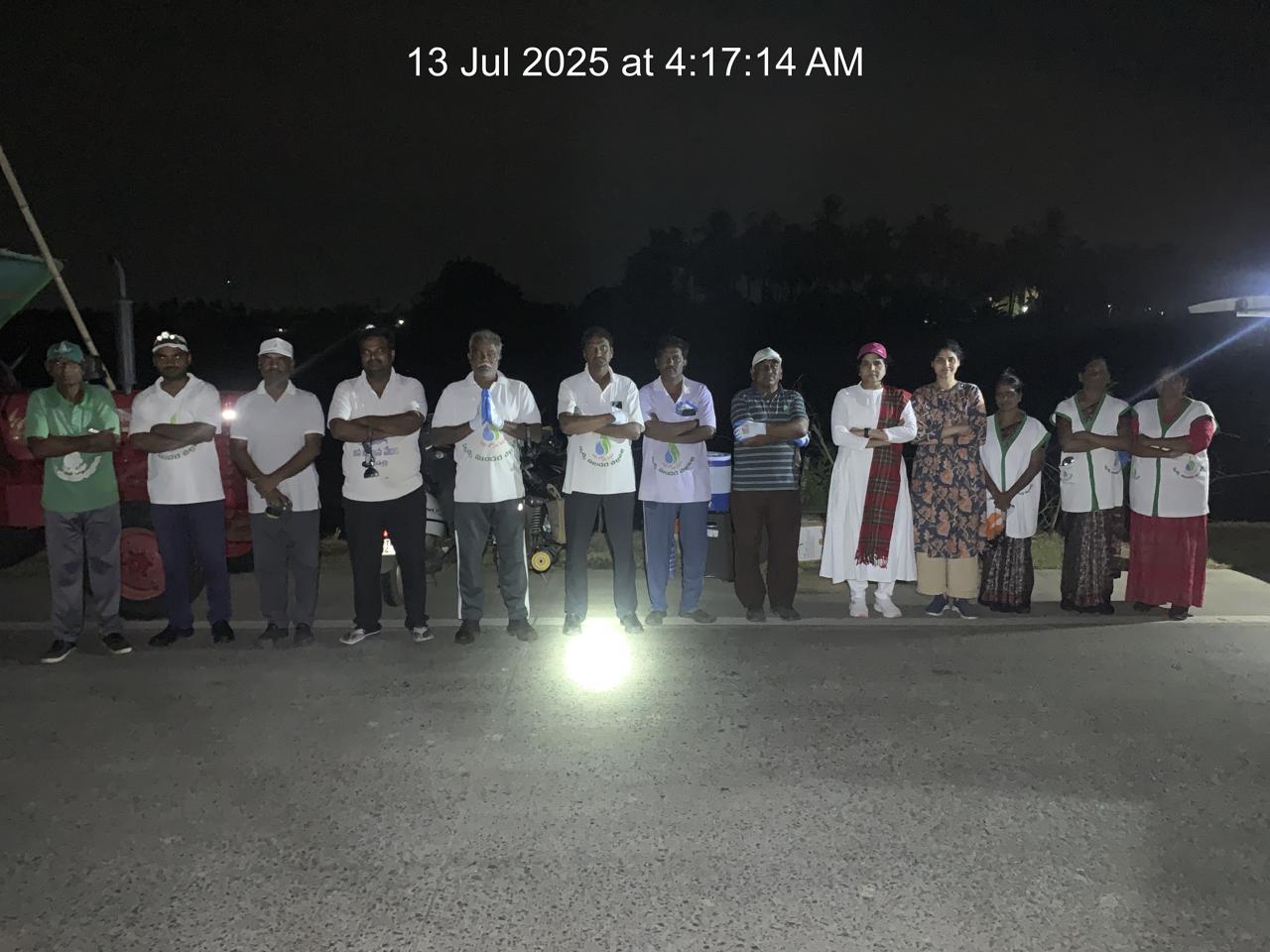 6 గంటల వరకు విసుగు చెందని విక్రమార్కుల వలె చెమటను చిందించిన సైనికులు విజిల్ మ్రోగిన సమయానికి పనికి విరామమిచ్చి, కాఫీ కబుర్ల అనంతరం దుక్కి దున్ని దమ్ముకు సిద్దం చేస్తున్న మాగాణి భూమిలో ఈ రోజు సమీక్ష సమావేశానికి ముందుకు నడిచారు. ఈ రోజు స్వచ్చ సేవకు విచ్చేసిన వేంకటేశ్వర టెక్స్ టైల్స్ అధినేత శ్రీ రామ్ కుమార్ గారిని అభినందించారు.