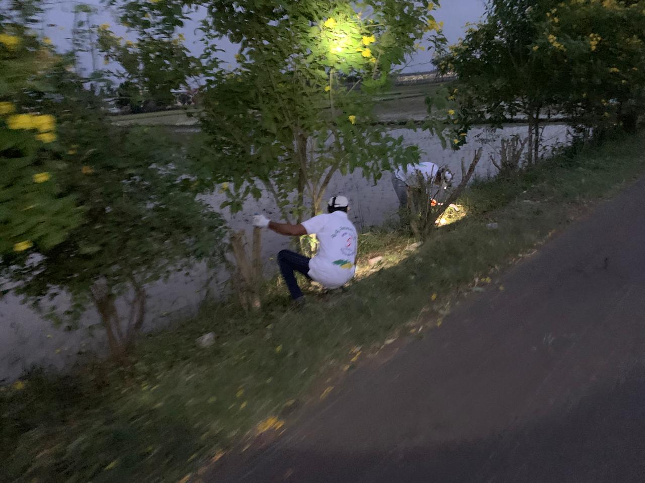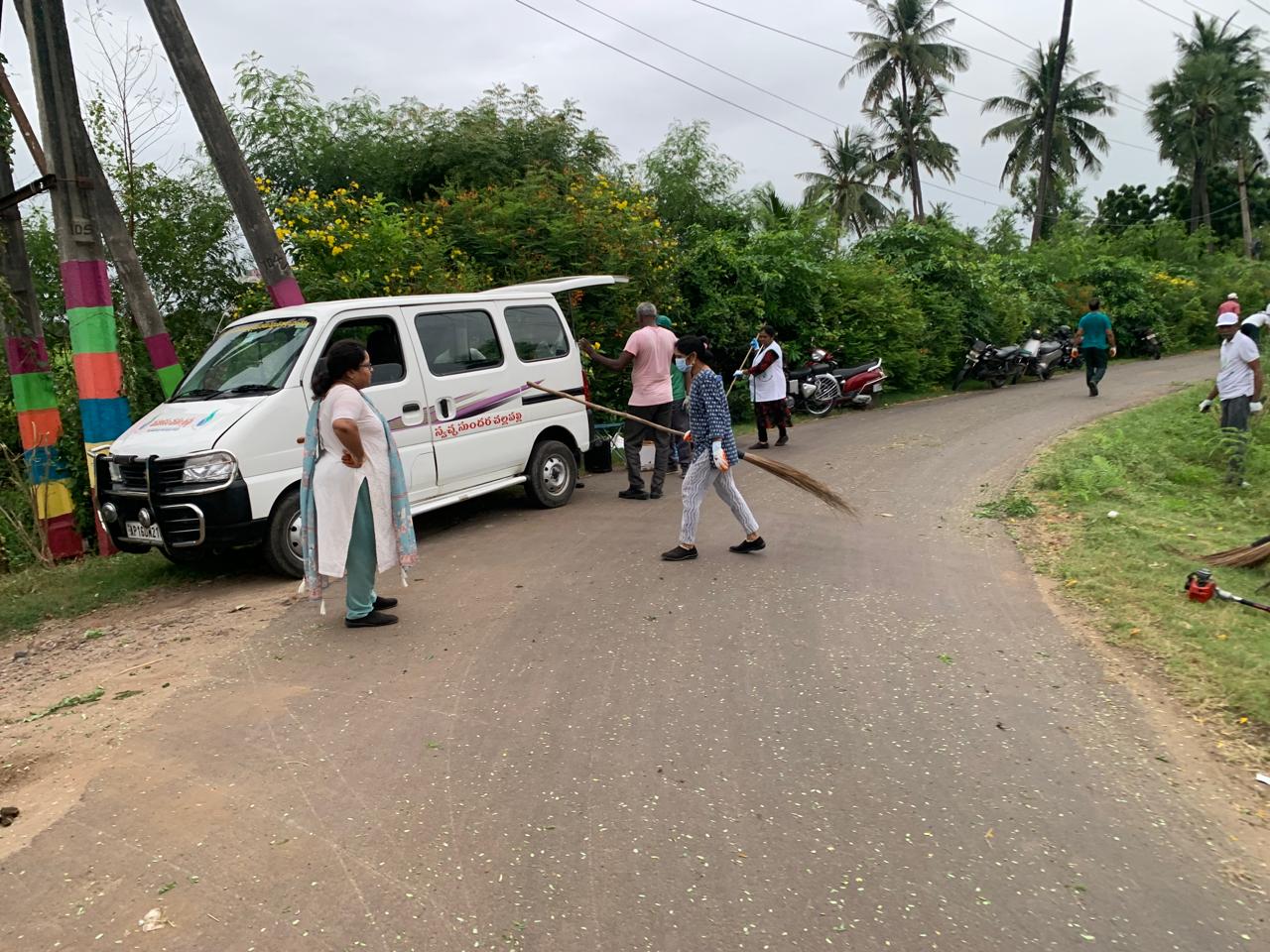 కొంతమంది కార్యకర్తలు రోడ్డు మలుపులో ఎక్కువగా ఉన్న పనిని పూర్తి చేయాలని డ్రైయిన్ వైపున పూర్తిగా శుభ్రం చేశారు. గత నెల రోజుల పైగా మన దగ్గర ఉన్న గడ్డి కోత యంత్రాలకు మాత్రం ఒక కార్యకర్త ఊపిరాడకుండా వాటికి పనిచెప్పడం జరుగుతుంది. 30 మందికి పైగా కార్యకర్తలు సందడిసందడిగా మాట్లాడుకొంటూ ఊరి బాగు కోసం ఆ సమయంలో వేరు వేరు పనిముట్లను, ప్రయాణికులనూ పట్టించుకోకుండా అవిశ్రాంతంగా పనిచెయ్యడం చూస్తుంటే ఆ సమయంలో ఇది ఎక్కడా చూడని, చూడలేని అరుదైన, అద్భుతఘట్టంగా అనిపిస్తుంది.