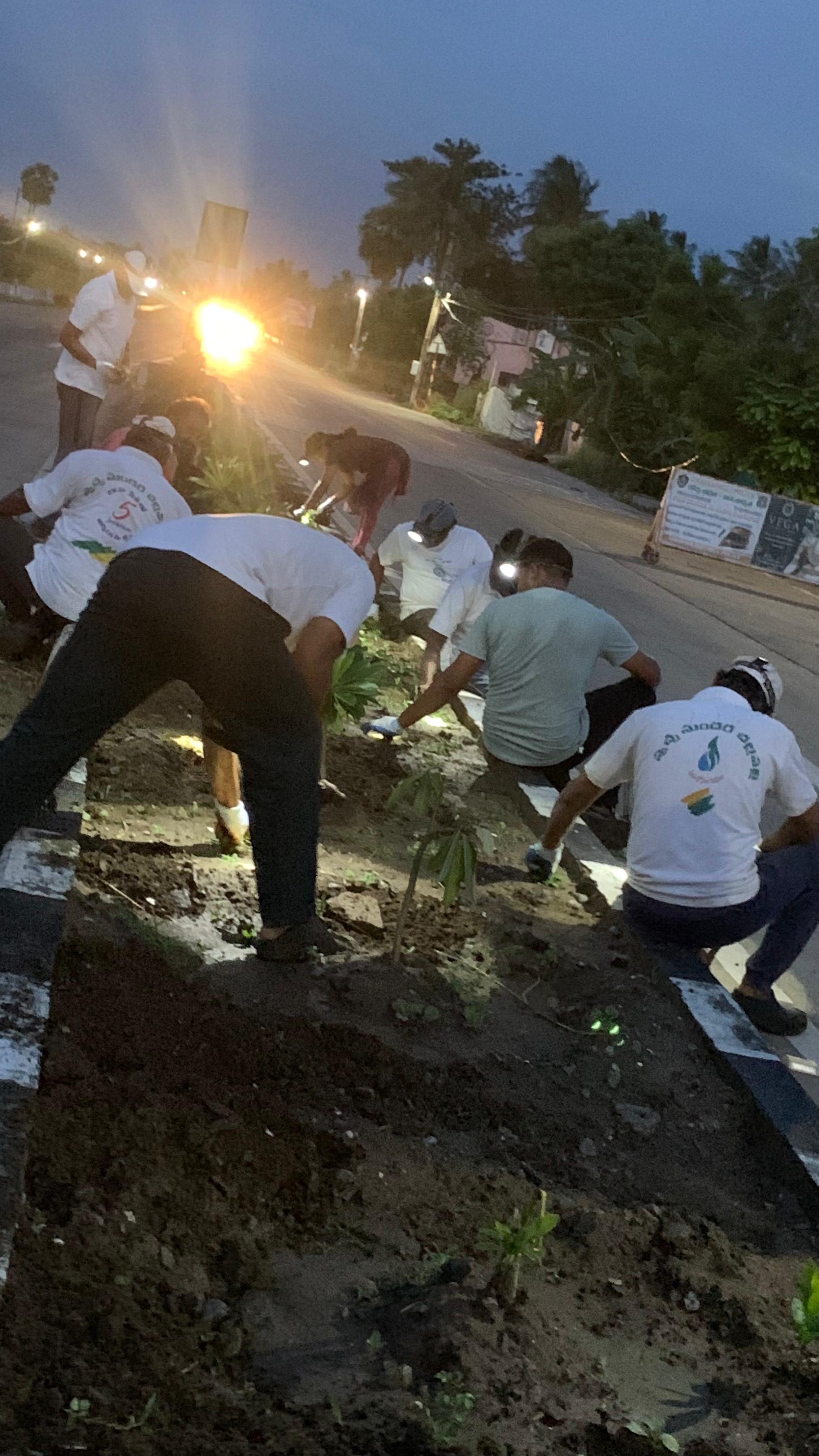 తెల్లవారుజాము 4:19 నిమిషాలకి 11 మంది కార్యకర్తలు హైవే రోడ్డులోని కాసానగర్ జంక్షన్ వద్ద మొదటి ఫోటో దిగి పనిని మొదలుపెట్టారు. చేతిలో అవసరమైన పనిముట్లు, తలమీద వెలుగులు చిమ్మే లైటు, చేతికి రక్షణగా గ్లౌజు, కాలికి రక్షణగా బూట్లు ఆ సమయంలో ఆ రహదారిపై వెళ్ళే వాహనాల డ్రైవర్లకు, ప్రయాణించే జనాలకు ఇలాంటి విచిత్రమైన దృశ్యం కనిపించేది మాత్రం ఒక్క చల్లపల్లి పొలిమేరలలోనే.
