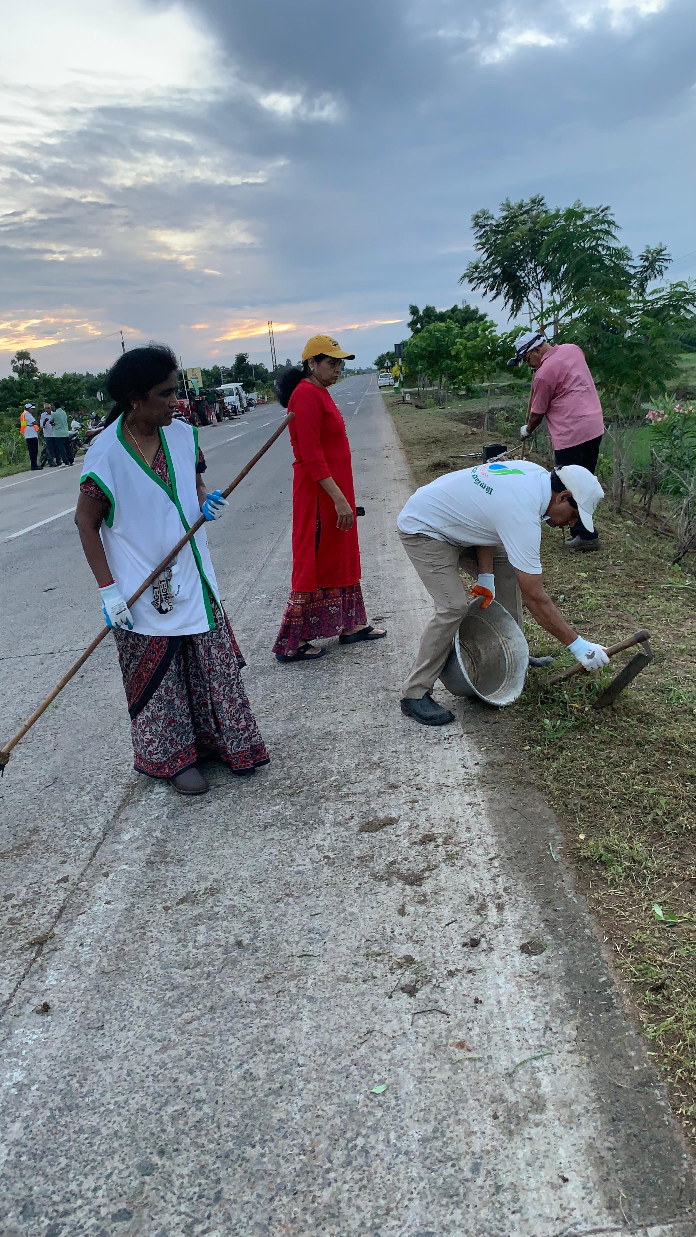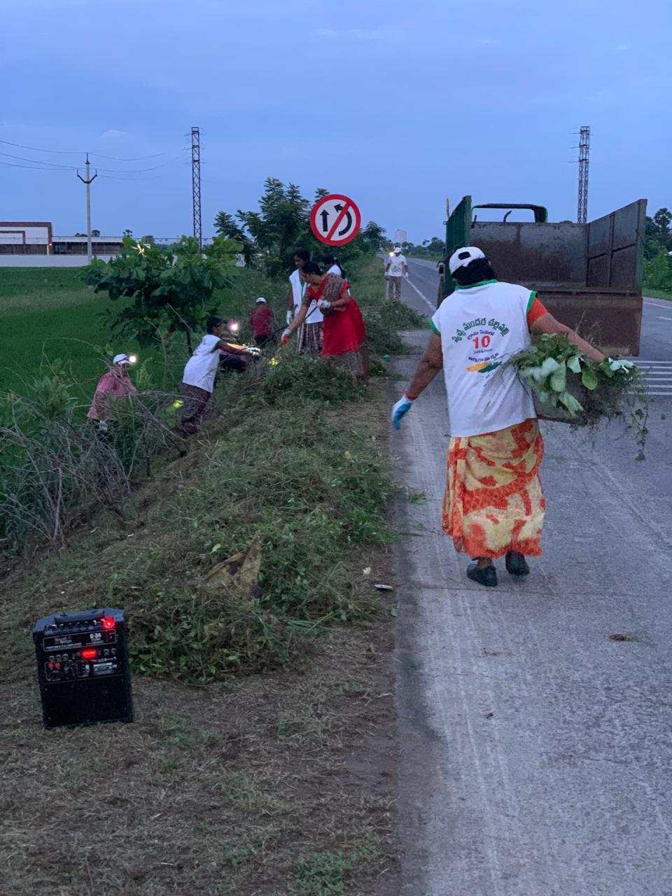 నేడు జాతీయ రహదారిపై ‘స్వాగత ద్వారము’నకు కుడి వైపున రోడ్డుకు అవతలి వైపు శ్రమించిన కార్యకర్తలు మొత్తంగా కలిపి 25 మంది.