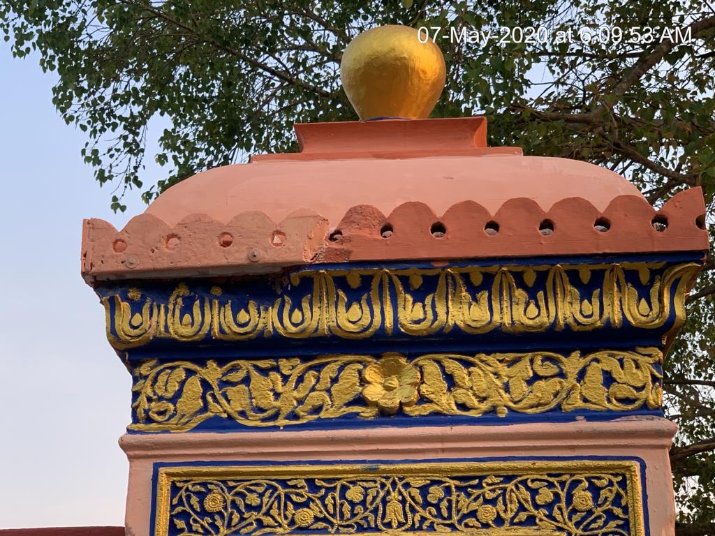 విరిగిపోయిన ఈ భాగాన్ని దుర్గా ప్రసాదు గారు ధర్మోకోల్ తో అదే కొలతతో తయారు చేసి బిగించారు. వారికి అభినందనలు.