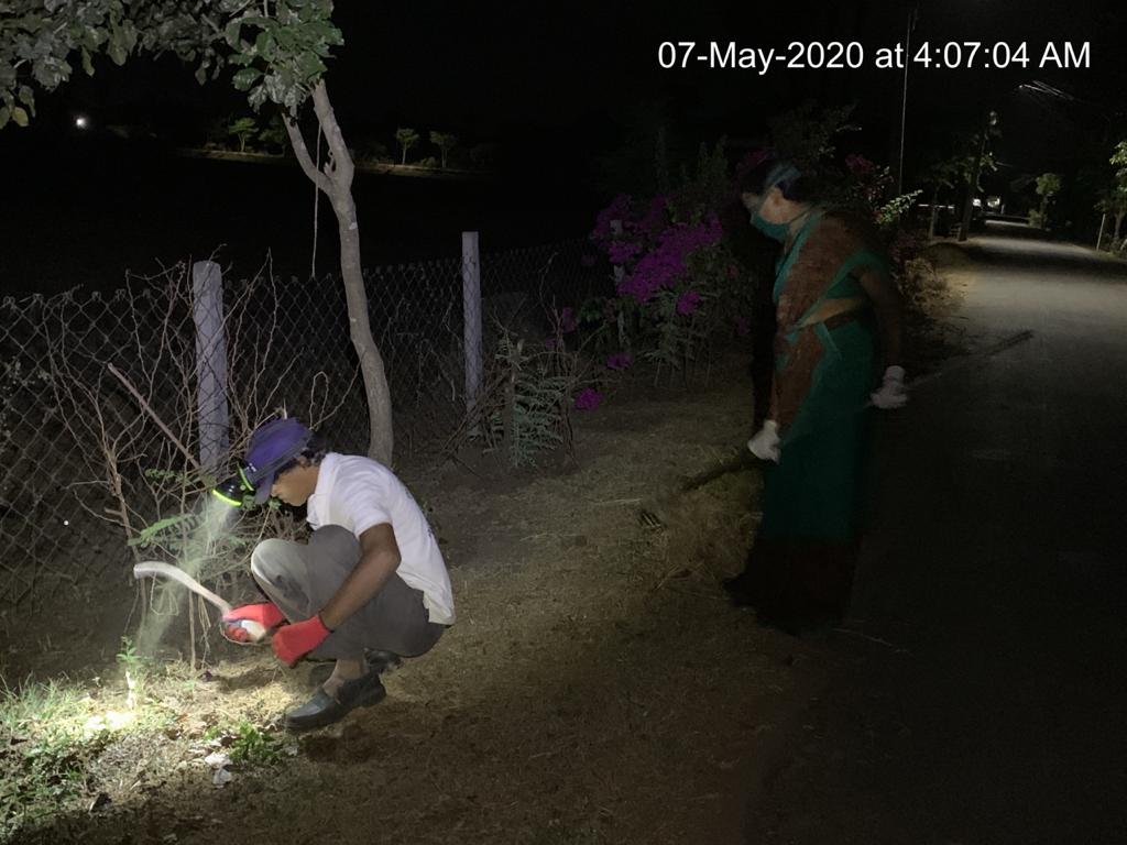 గంగులవారిపాలెం దారి మలుపు దగ్గరి ప్రైవేటు నివేశన స్థలాలను 20 మంది – 40 పని గంటలపాటు శ్రమించి. దర్శనీయాలుగా మార్చడమే ఈ రోజు ముందుగా ప్రస్తావించుకోవాలి. ఎగుడు – దిగుడు దిబ్బల మీద పొదలుగా అల్లుకొన్న తీగలతో, ఉత్తరేణి కంపతో సీమ చింత చెట్లతో, చిక్కులు పడి పెరిగిన ఇంగ్లీష్ తుమ్మ చెట్లతో, పిచ్చి మేడి మొక్కలతో చిట్టడవిగా మారిన ఆ ప్రాంతాన్ని – చీకట్లోనే నరికి, ఊడ్చి రెండు పెద్ద గుట్టలుగా పేర్చారు. ఇందుకు కత్తులు, గొడ్డళ్ళు, మర రంపాలు కావలసి వచ్చాయి.