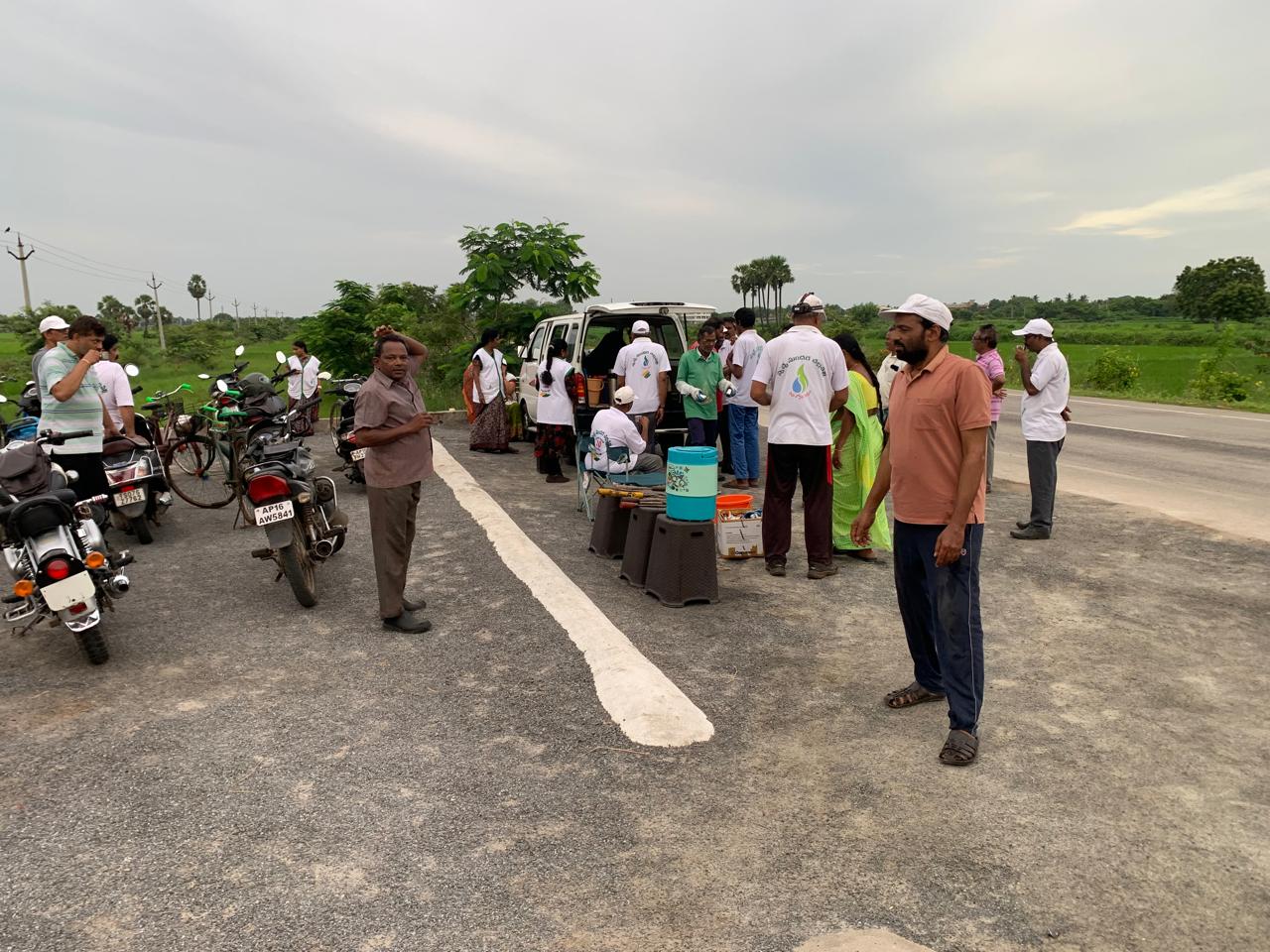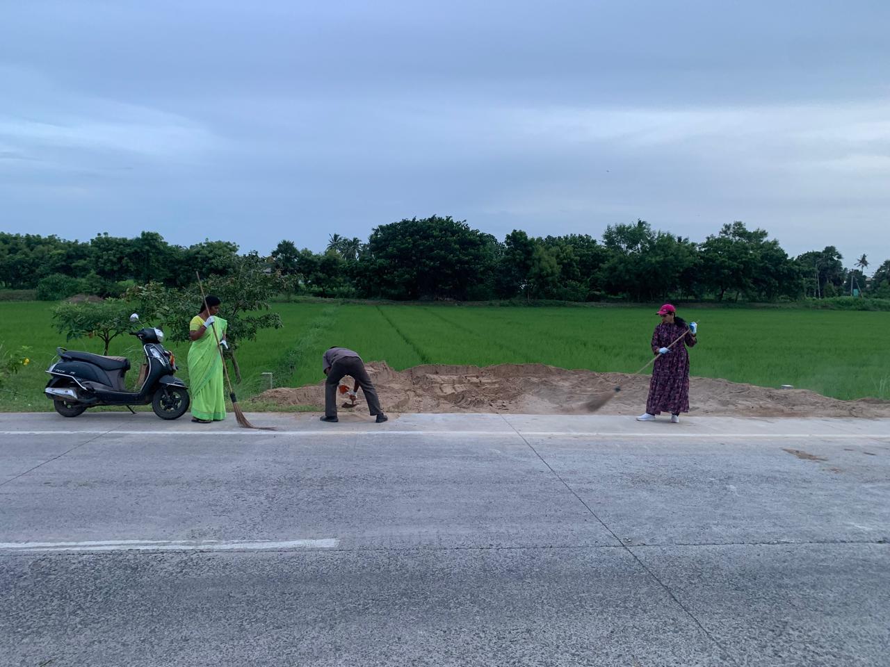 వేకువ జాము 4.19 ని.లకు జాతీయ రహదారి ప్రక్కనే ఉన్న శారదా గ్రాండియర్ ఫంక్షన్ హాలు వద్ద 16 మంది కార్యకర్తలు పనికి సిద్ధమయ్యారు. పనిముట్లు చేతబట్టి రహదారి ప్రక్కన మొక్కలను అల్లుకొన్న పిచ్చి తీగ, కలుపు గడ్డి వీటన్నింటిని తీసివేసి మనం నాటిన మంచి మొక్కలు బాగా పెరిగేలా కార్యకర్తలు గత 2 నెలలు పై బడి వీటి పరిరక్షణ కొరకు చెమటోడ్చుతున్నారు.