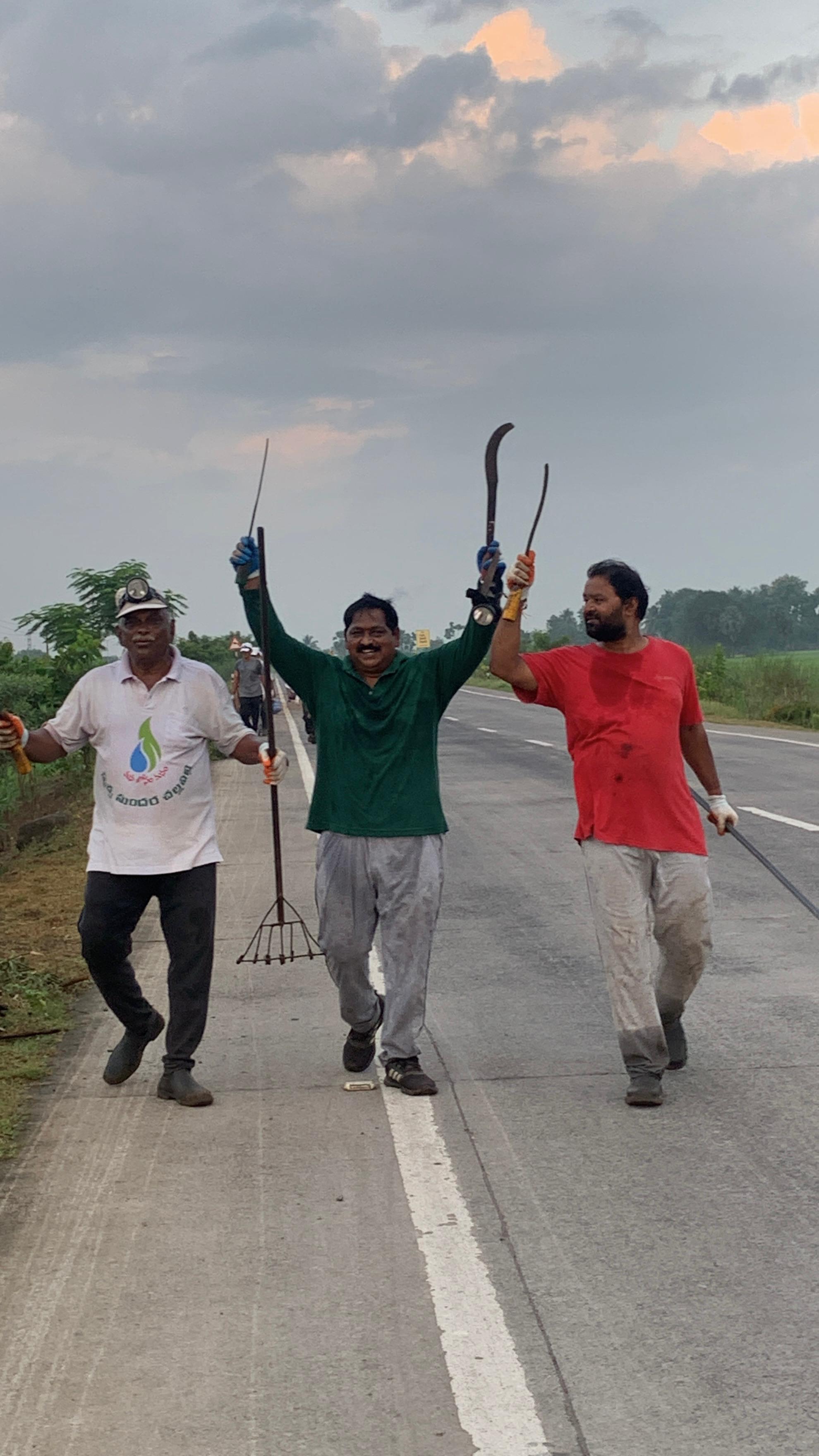 ఒక కార్యకర్త మాత్రం గడ్డి కట్టర్ ను ఉపయోగించి రెండు ప్రక్కలా హైవే మార్జిన్ లు మిషన్ తో కత్తిరిస్తూ హైవేకు చూడ చక్కటి రూపమిస్తున్నారు.